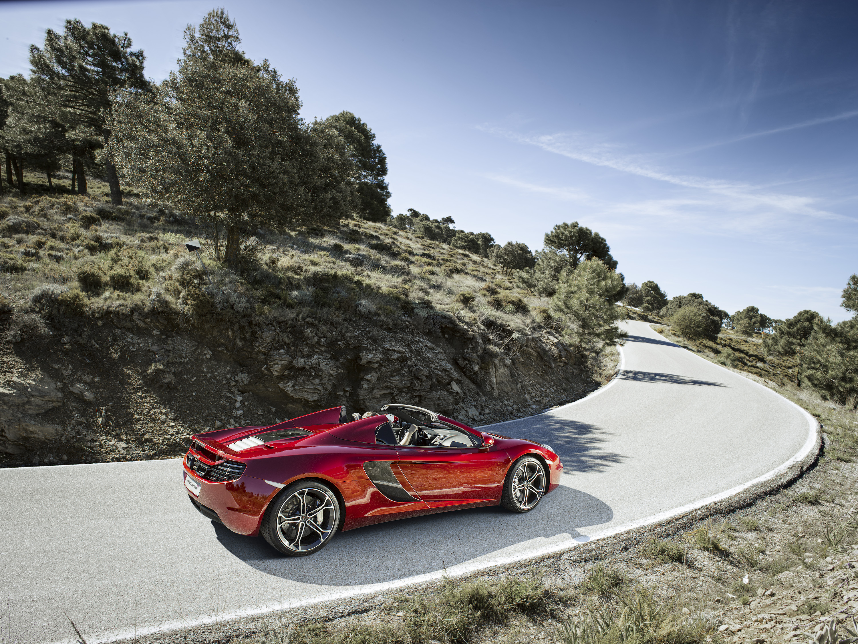 12C Spider 的電動摺疊式硬頂開篷,開合過程僅少於 17 秒,可在時速 30 公里完成開關篷頂的動作。置於司機及乘客座位正後方的後擋風玻璃,亦可以電動方式調校升降,具有擋風與穩定座艙氣流的功能。為提升安全性,12C Spider 的車尾兩側亦配備了被動式翻滾防護系統,鋼質結構可吸收外來衝擊能量提升乘客的安全。另外,當篷頂完全開啟時,原本收藏硬頂的空間可放置 McLaren Automotive 度身訂制的手工行李袋,為車主提供額外 52 公升的儲物空間。