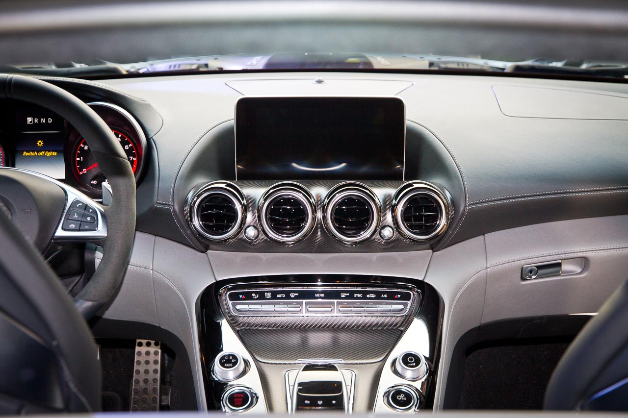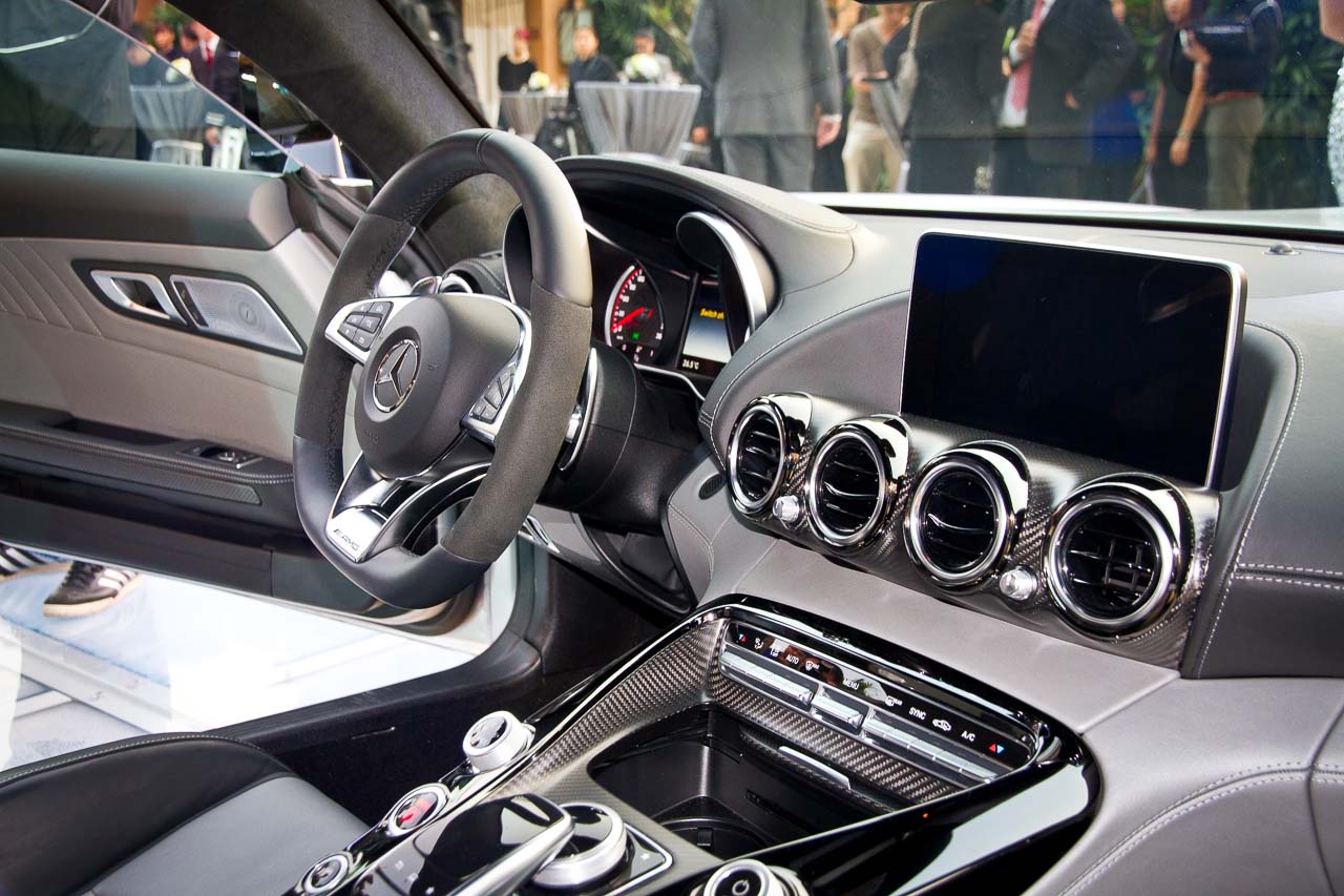 車廂佈局為新一代平治車設計,短小的波棍,前方是手寫觸控板。中控台上方是一個大型顯示屏。波棍兩旁是專用跑車設定按鍵和著車鍵。只是係是 AMG 車主就不會陌生。