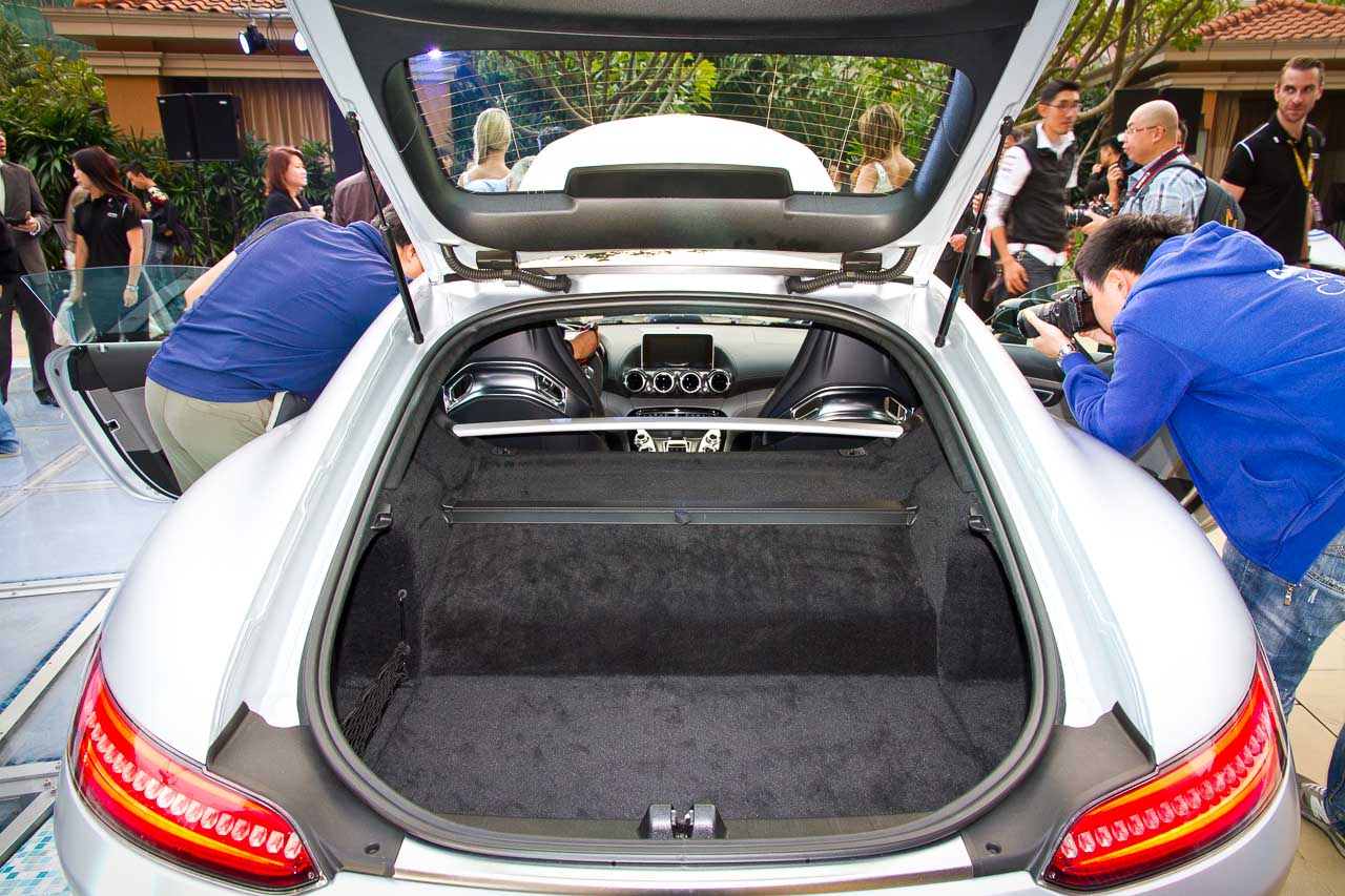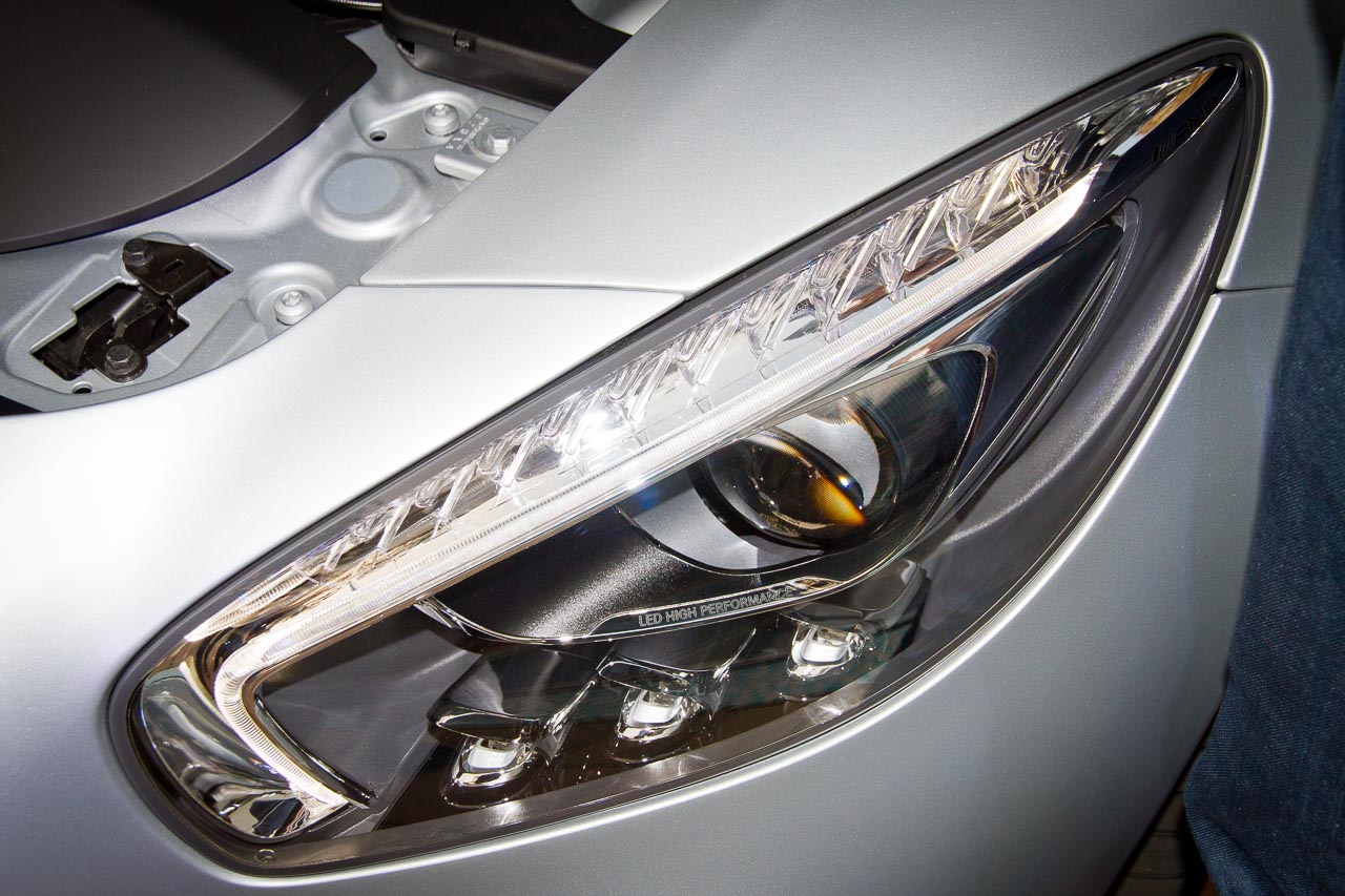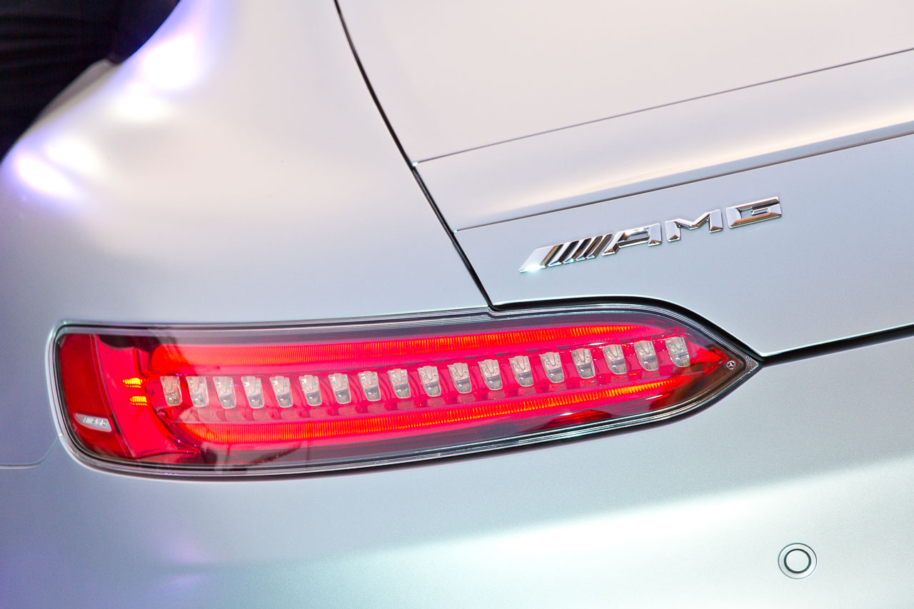 以 AMG GT 尺碼來看,可能見到它是針對 Porsche 911 而來,動力方面還要是針對 911 Turbo,可見它們未推出先引來車迷車主的飯後話題絕對不誇張。AMG GT 是沒有鷗翼設計,車身線條流麗瀟灑,帶一點肌肉感,當近距離接觸過它之後,更加被它所迷倒。AMG GT 的車身寬度與 SLS AMG 一樣,不過長度就短了 92mm,只有 4,546mm,車身高度多了 37mm,達 1,289mm。軸距為 2,630mm,比 SLS AMG 短了 50mm。車重方面在 1,540kg 水平,亦是比 SLS AMG 輕了一點。