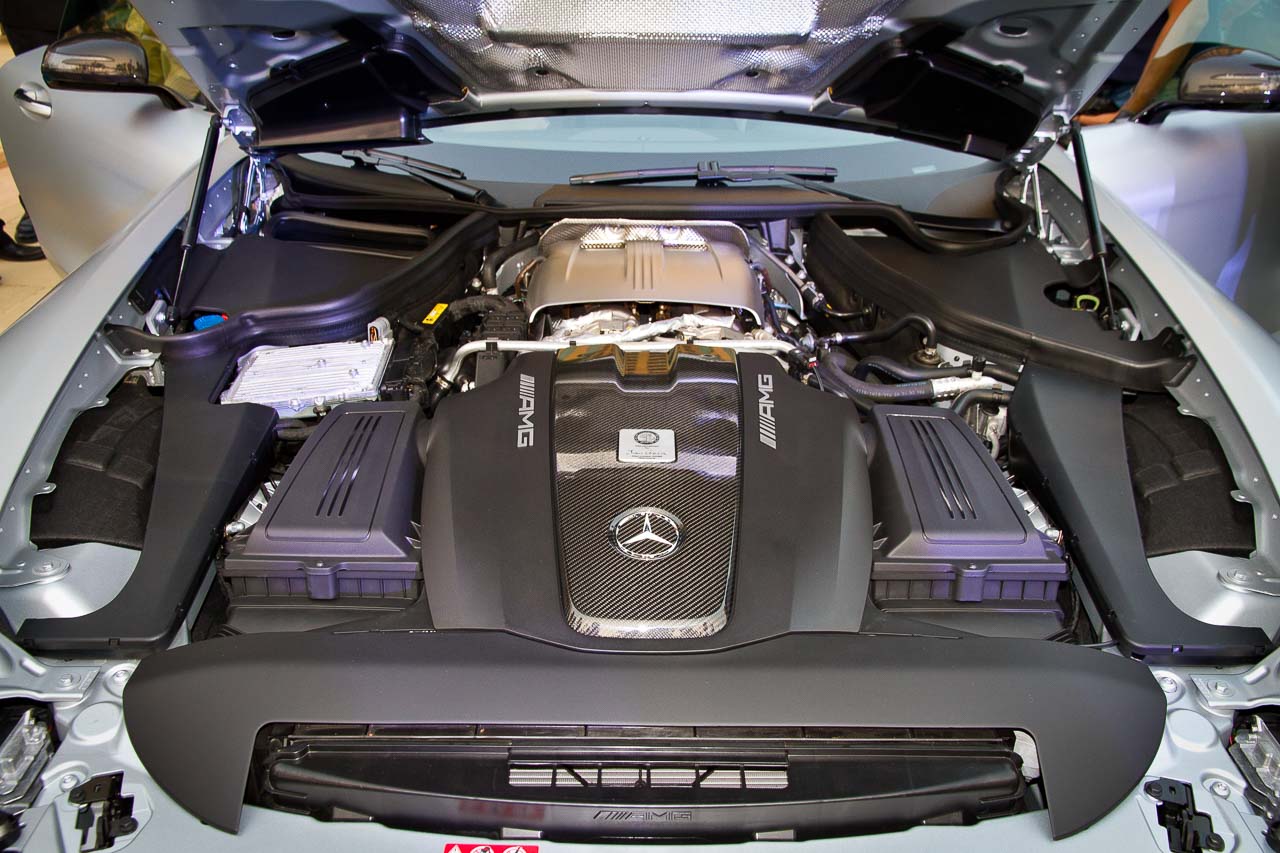 這是 AMG GT S 的引擎模樣,最大馬力達 501 匹和 650 牛頓米。由於這部車多了很多電子系統和性能提升,筆者覺得它比 GT 版更抵買。