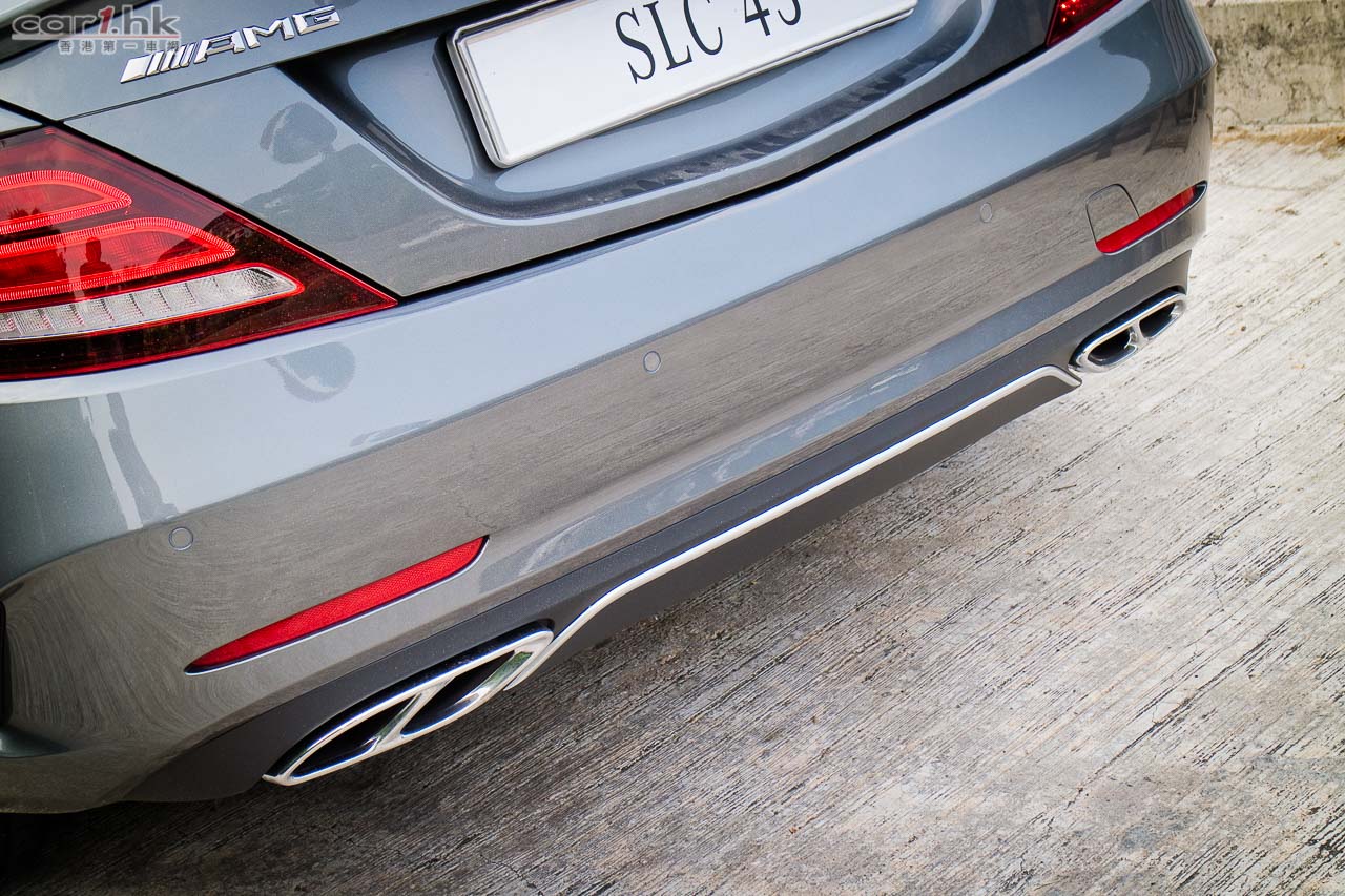AMG SLC 43 車身外裝都進行強化,車頭擾流、車尾鴨翼、電鍍四出尾喉都是這部車配置。