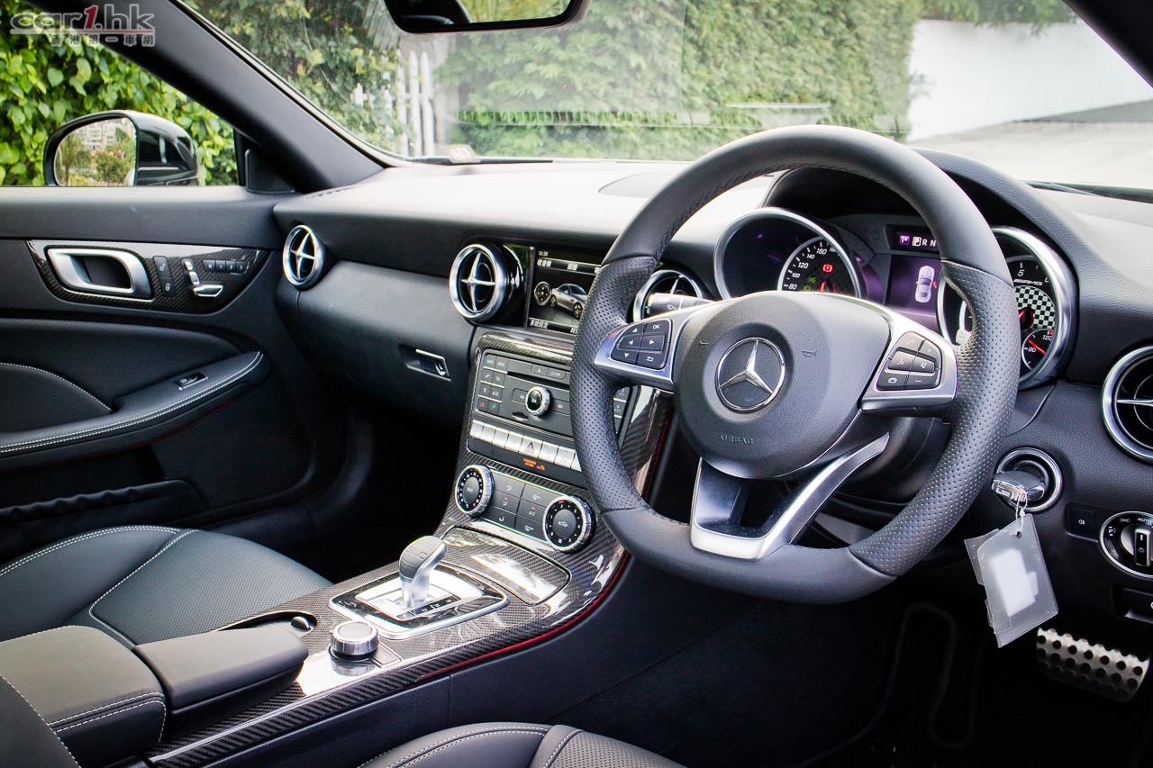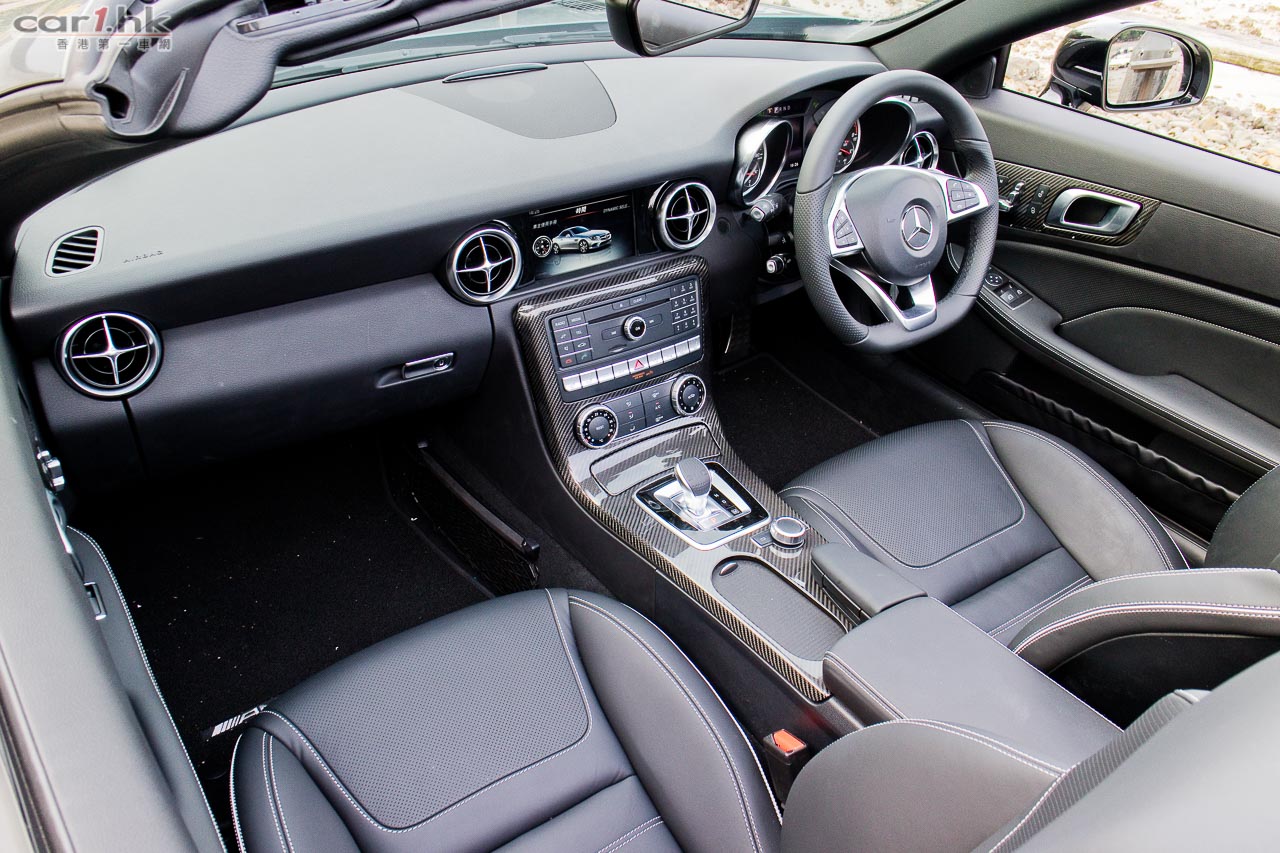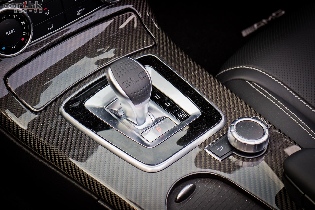 中控台操作跟過往設計十分接近,波棍上印有 SLC 字樣,開篷鍵有小蓋隱藏起來。
