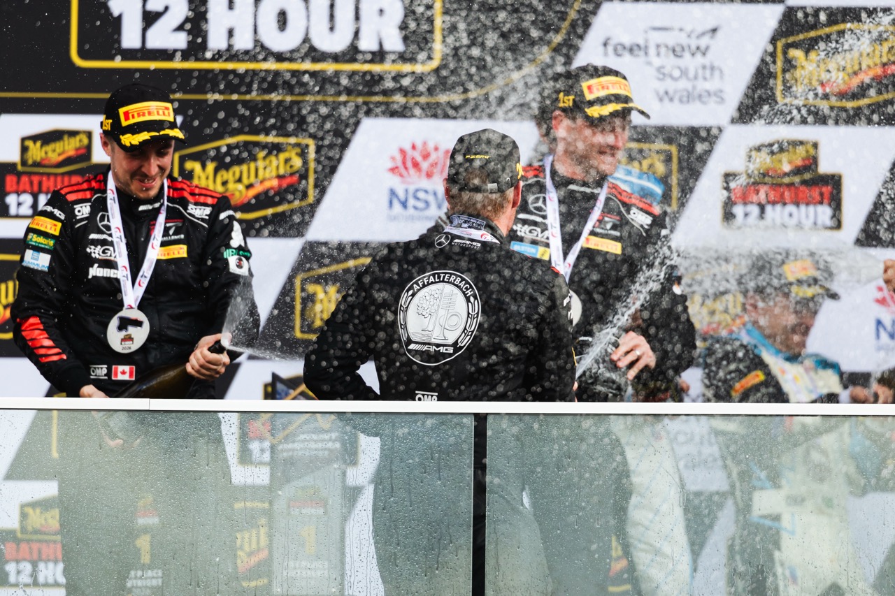 最令人嘖嘖稱奇的是由 Maro Engel、Mikaël Grenier 及 Maxime Martin 駕駛的 888 號 Mercedes-AMG Team GMR 賽車。他們在排位賽表現欠佳,僅排在第 29 位起步。在高手如雲的 GT3 戰場,這幾乎是被判了死刑的位次。然而,團隊憑藉精準的油耗管理與兩次安全車時段的完美「補油」策略,在比賽末段成功突圍。這不僅是三位車手個人在巴瑟斯特的首勝,更是賽會史上首次有賽車從如此靠後的位次反超奪冠,為 Mercedes-AMG 創下繼 2013、2022 及 2023 年後的第四座冠軍獎盃。