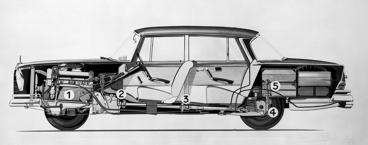 談到平治的經典設計,必須追溯到 1886 年那部獲頒專利編號 DRP 37435 的三輪汽車。那不僅是移動工具的誕生,更是美學與功能結合的起點。到了 1950 年代,平治在設計上迎來了歷史性的突破。1951 年,傳奇工程師 Béla Barényi 提交了安全車身的專利申請,這項設計徹底改變了汽車的形態。以往人們認為車身越硬越安全,但 Barényi 卻反其道而行,提出了「撞擊緩衝區」概念。這種概念在 1959 年推出的 W 111「噴射尾翼」(Fintail)房車上首次實現,優雅的車尾線條內隱藏著能夠吸收撞擊力的構造。這種前瞻性的外型設計,不僅是為了視覺美感,更是為了守護生命,成為了往後所有汽車設計的憲法。