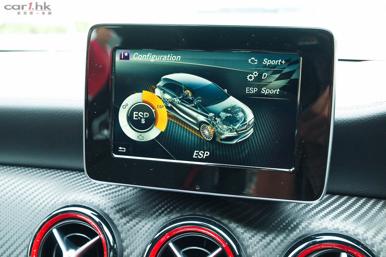 新版A 45新增一項之前沒有的加錢另購AMG DYNAMIC PLUS package加AMG RIDE CONTROL電子軟硬避震,前輪加配機械式限滑差速器,Dynamic Select駕系統有第5個「Race」模式,轉波時間比「Sport +」更快,ESP系統有容許更大甩尾角度的「Sport Handling Mode」,引擎和波箱會以最低波段和最高轉數方便跑track,示範車則沒有裝上。