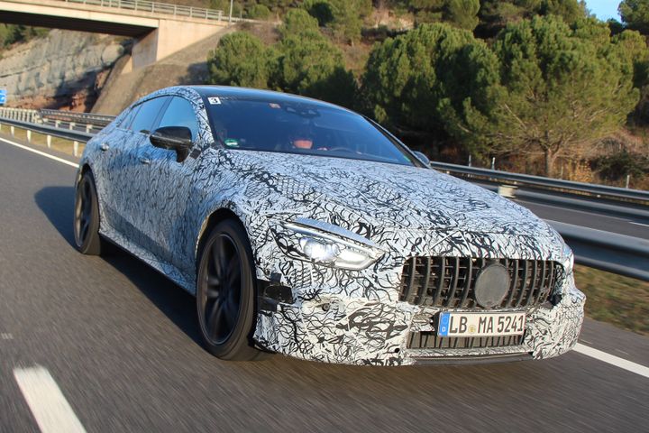 Mercedes-Benz 2017 年日內瓦車展推出 AMG GT Concept,成功獲得全球車迷一致好評,於是決定加緊步伐在今年日內瓦車展將會推出量產版 AMG GT4,並發佈偽裝車的照片讓車迷率行窺見新車輪廓。可以看到 AMG GT4 延續了 AMG GT Concept 的俐落車身線條,還有大型鬼面罩和銳利頭尾燈組。不過,AMG GT4 並沒有使用電子顯示車側睹後鏡,沿用傳統設計的睹後鏡;而概念車誇張的中置尾喉亦改為傳統四出尾喉。動力系統方面,雖然現時仍然未正式公佈,但估計可能使用 4.0 公升 V8 雙渦輪增壓引擎配電動馬達,可爆發出 800 匹綜合馬力,0-100km/h 加速預期可在 3 秒內完成。
