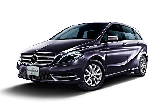 Mercedes-Benz 最近在日本推出 B-Class 特別仕樣,名為 B180 Northern Lights Black edition,車身顏色採用特別的 Attractive Purple 紫色塗裝,陽光之下更顯出強烈的金屬感,而且配備了 bi-xenon 頭燈及 LED 方向燈的鍍鉻車側燈。至於車廂則加裝了真皮方向盤,座椅有著加熱功能,而且後排座椅的 Easy-Vario-Plus 設計,令到載物量可輕鬆提升至 1,995 公升。另外,配備 1.6 公升直四渦輪增壓引擎,有最大馬力 122 匹 @ 5,000rpm,以及扭力 200 牛頓米 @ 1,250-4,000rpm,並使用 7 速雙離合器波箱,平均 1 公升汽油可行駕 16 公里。
