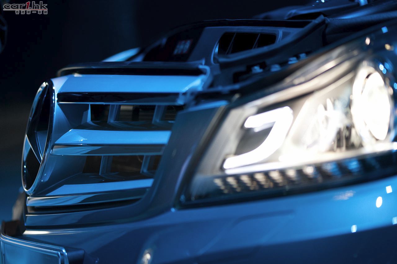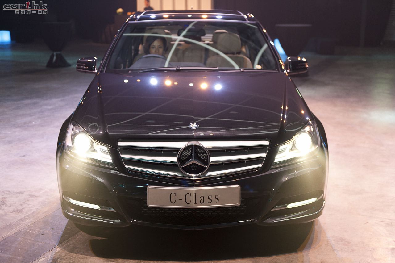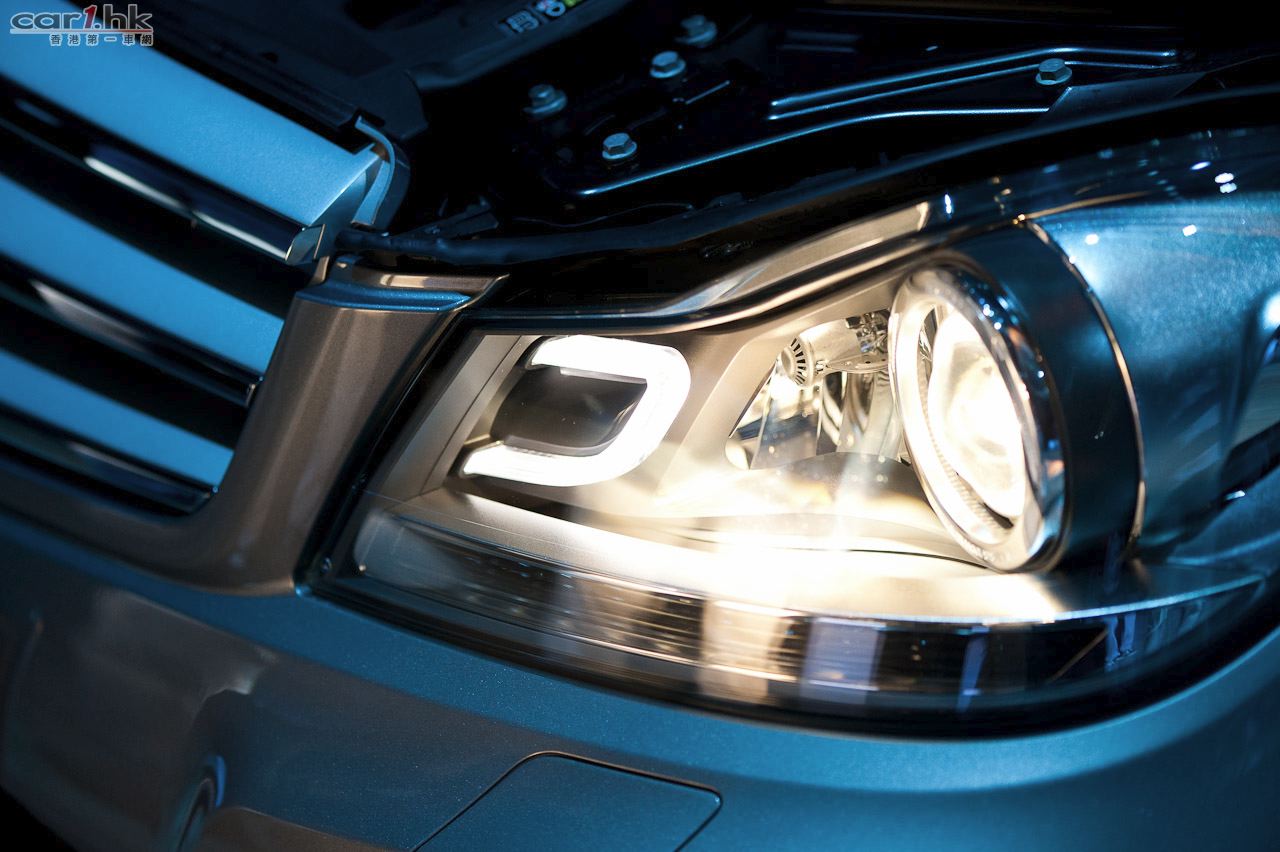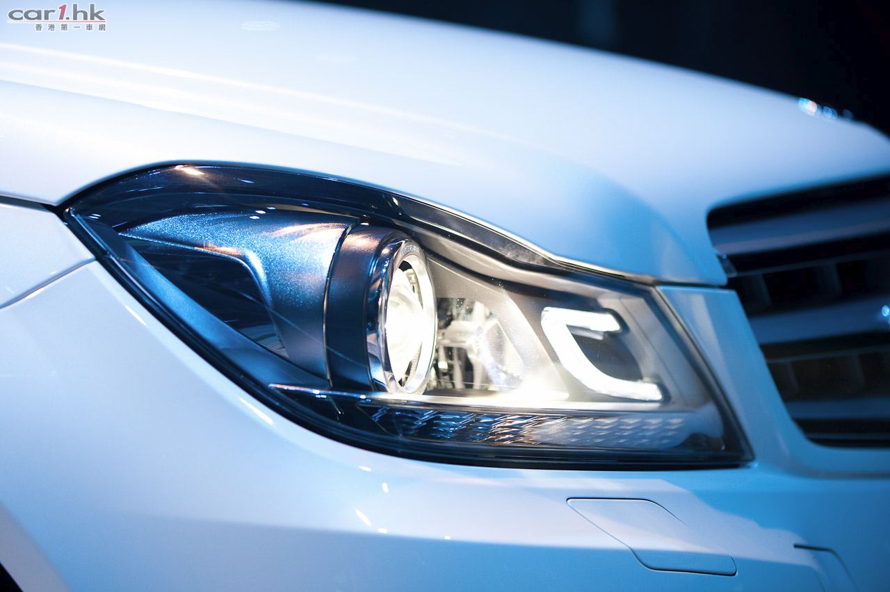 改良了的高亮度頭燈,兼備動態與剛毅特質,並跟引擎蓋、散熱器格栅及保險桿配合,強化了車身前部的 V 形線條。剛毅的印象被頭燈及車廂內部的元素強化。跟保險桿水平排列的 LED 日間行車燈,讓其他道路使用者從遠處已能辨認出這是新一代 C 系列。