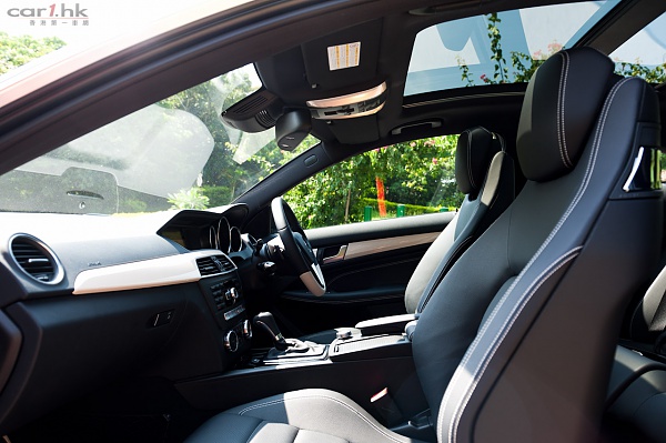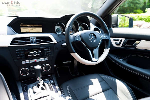 對於很多人來說,兩門房車車廂空間小,不夠舒服。雖然今次試駕的 C350 Coupe 不算大型車身,但是前排、後排座椅的腳部空間都充裕,頭頂空間方面亦與四門房車版相近,再加上兩天幕設計,只要打開天幕後,其空間感顧慮即時消失。C-Class Coupe 的四個座位都是獨立位,而前座高身的半桶椅設計,令駕駛席更富跑車味道,試駕了半天,其承托力很好亦屬於舒服型。Coupe 版本與房車版的錶版也是使用最新的三圈設計,同時利用 LED 顯示屏在銀版中圈顯示資料,加上適量地加入銀色圍邊,令這副新錶版使用在 C-Class Coupe 更入型入格!