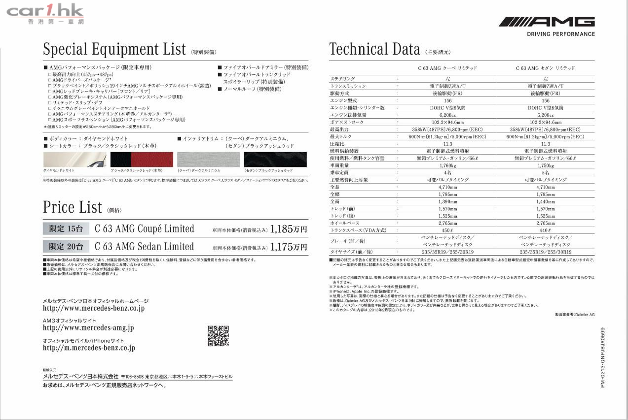 主頁外地新聞 Mercedes-Benz 推出 C63 AMG 日本特別版 07/03/2013 FacebookWhatsAppLinkedinLINETwitterEmailCopy URL打印 Mercedes-Benz 推出 C63 AMG 日本特別版,分別有 Coupe 及 Sedan 兩個版本。最主要的變化是外觀以白色為主,及配襯紅色煞車鉗、尾箱蓋和車側倒後鏡殼,就猶如日本的國旗顏色以紅白為題。另外,雖然都是採用與普通版本同樣是採用 V8 引擎,但馬力則由 450 匹提升至 480 匹。房車版限量發售二十輛,價錢為 $1,175 萬日元;轎跑版限量十五輛,定價為 $1,185 萬日元。 文:Issac.C Mercedes-Benz C63 AMG 日本特別版圖片集 TagBenz 平治MERCEDES-BENZMercedes-Benz C63 AMG外地新聞平治汽車資訊跑車新聞 分享 FacebookWhatsAppLinkedinLINETwitterEmailCopy URL打印 前一篇文章2013 日內瓦車展:Ferrari LaFerrari 963 匹狂野馬王下一篇文章Volkswagen 7 代 Golf Variant 圖片釋出 相關內容 平治 S-Class 領銜 Robotaxi 陣營!預示司機失業潮正式進入倒數? 140 年功力大爆發!平治 S-Class 過半零件推倒重來終極進化 DENZA 圓方車展延長至 2 月 15 日 小量量產:平治 NextGenH2 氫燃料重卡 1,000 公里續航強勢登場 日產新型 Leaf B5 日本售價公開 日產 Ariya NISMO 改款售價正式揭曉 最新內容 商用車 平治 S-Class 領銜 Robotaxi 陣營!預示司機失業潮正式進入倒數? 外地新聞 140 年功力大爆發!平治 S-Class 過半零件推倒重來終極進化 新聞中心 DENZA 圓方車展延長至 2 月 15 日 裝載更多