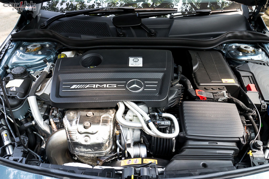 CLA 45 AMG 使用全新開發的 2.0 公升直四 Turbo 引擎,除擁有爆發 360 匹馬力外,450 牛頓米扭力,只需於 2,250-5,000 轉時便可完全釋出,配合 AMG SpeedShift DCT 7 速雙離合器波箱,4.6 秒即可完成 0-100km/h 加速,完全展現出令人樂而望返的跑車趣味,略為深踩油門可以體會到強烈的推背快感,衝刺的突進性快得讓人嚇一驚,表現乾脆俐落,毫無遲緩,算是筆者近期試過最爆的小跑車。最重要是極易操控,軚感重量適中,攻彎指向性精準,加上 EPS 電子循跡穩定系統在有需要時便會自動介入修正,即使高速攻彎,四輪也能緊咬地面,彎路表現輕鬆自在。而且配備 AMG 4MATIC 四驅系統,因應行車需要自動改變前後輪軸的扭力分布,如一般駕駛時是以前輪驅動,但一旦發生打滑情況就會即時把扭力傳送至後輪,使扭力分佈達均 50:50 的完美比例。另外,引擎聲浪比其他同容積車款澎湃得多,整體就如駕駛著一輛隨時隨地準備落場的戰車般,極富樂趣。