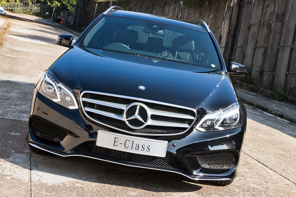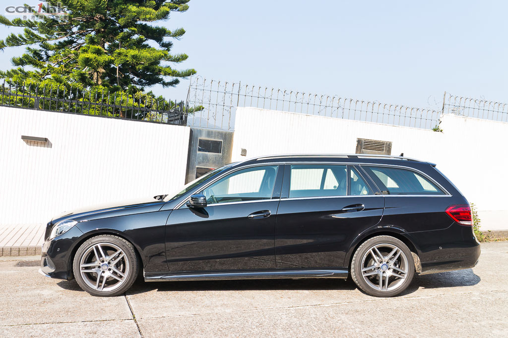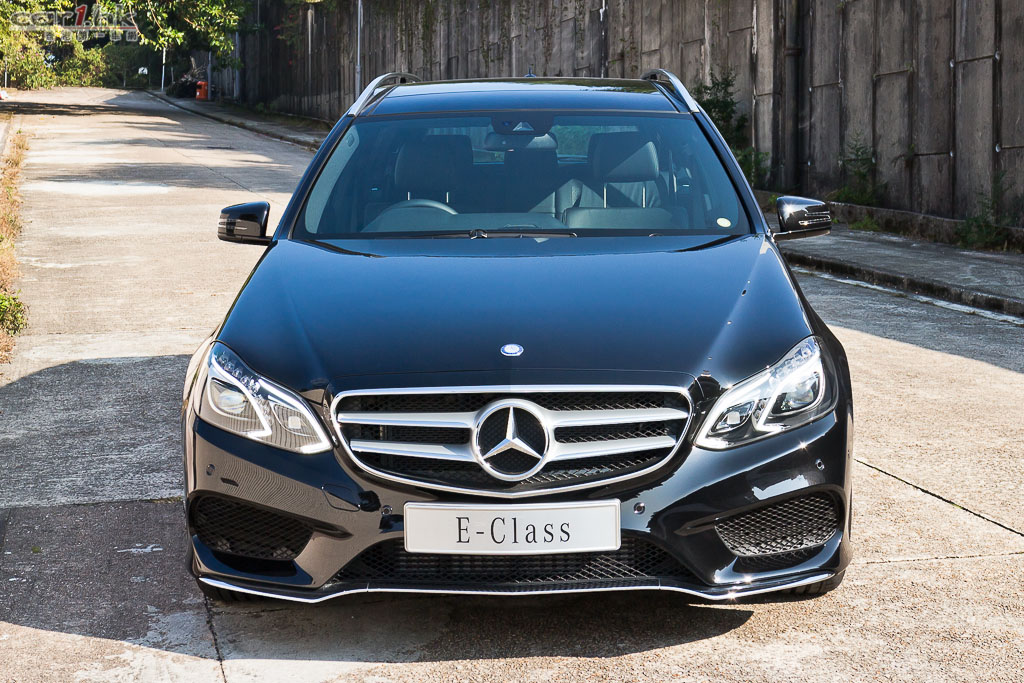 平治 E-Class 房車於 2013 中推出由長方形大細眼改為雙箭咀形頭燈的 facelift 版本,這是其 Estate 旅行車型號。除了最明顯的新設計頭燈外,新 E-Class 在這 facelift 中,車頭模樣改得更似新款 A-Class 的新平治面孔,而 E-Class 更特別憑較為典雅的 Elegance 和跑格的 Avantgarde 兩個型號的不同款式鬼面罩和泵把,帶來所謂兩個不同的賣相,E-Class Estate 當然也一樣;不過與早前供傳媒測試的四門 E-Class 一樣,香港平治為求示範車以最型的姿態示人,車子改用了 optional 的 AMG 車身 package,包括有 AMG 款式的前後泵把和 18 吋輪圈等,這部 E-Class Estate 也一樣。
