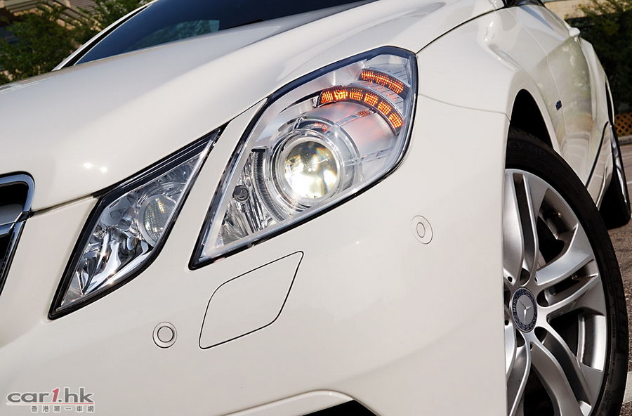 車頭燈設計與其他 E-Class 有異,Coupe 版的指揮燈由兩層 7 個小燈組成。