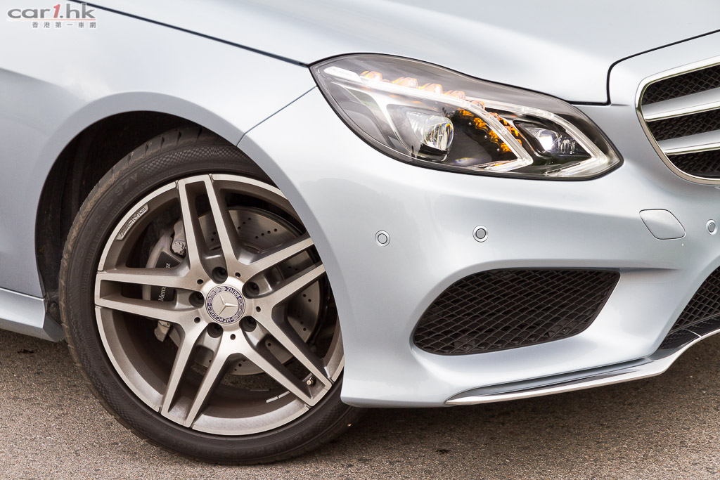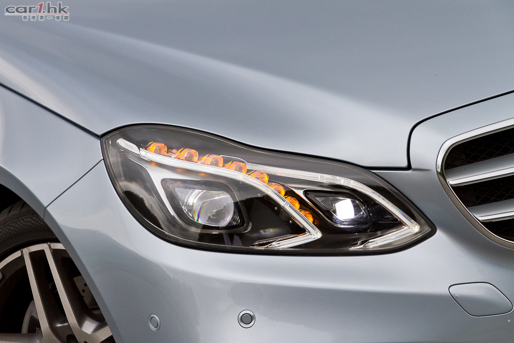 自從 1995 年開始便使用 E-Class 的「四眼仔」設計已成為其身份象徵,不過今次 Facelift 就大突破,雖然不再使用四圓燈設計,但其實細心一看會發現由 8 顆 LED 燈組成的指揮燈把大細燈分開,仍然是四眼頭燈的設計。而且,今次試駕的 E250 Sport 加裝了 AMG 包圍和 18 吋 AMG 樣式輪圈,而且引擎蓋還新增了骨線,再加上雙橫間大芒星鬼面罩及銳利的頭唇,令到車頭的跑車氣勢更俐落逼人。