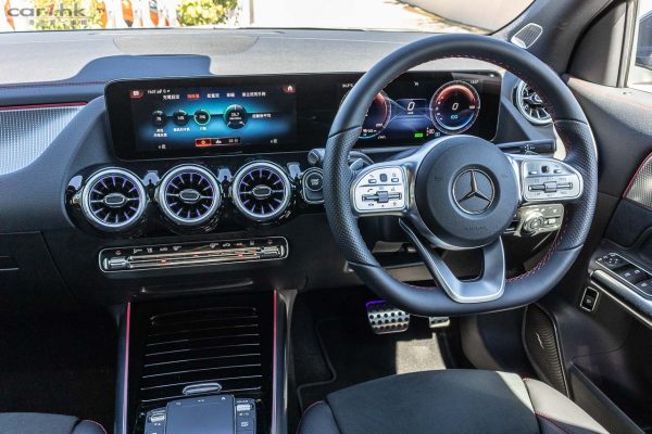 前排駕駛席佈置是用了車廠最新的設計,大型中控台屏幕連著駕駛席的數碼錶板,中控台使用 MBUX 系統,有 Apple CarPlay 亦有呼叫 Hey Mercedes 就能啟動的智能語音操作系統。為了讓車主更了解電池應用狀況,在中控台內我們可以看到充電、耗電量和能量流等情況,電量應用在那個部份都可以查看得到。EQA 標準配備包括 LED 高性能頭燈連自動適應高燈輔助系統(Adaptive Highbeam Assist),EASY-PACK 車尾門連電動開關,18 吋輕合金輪圈,64 色車廂氣氛燈,雙杯架、前座車椅連四方向腰部承托,後視泊車鏡頭及真皮多功能軚盤。