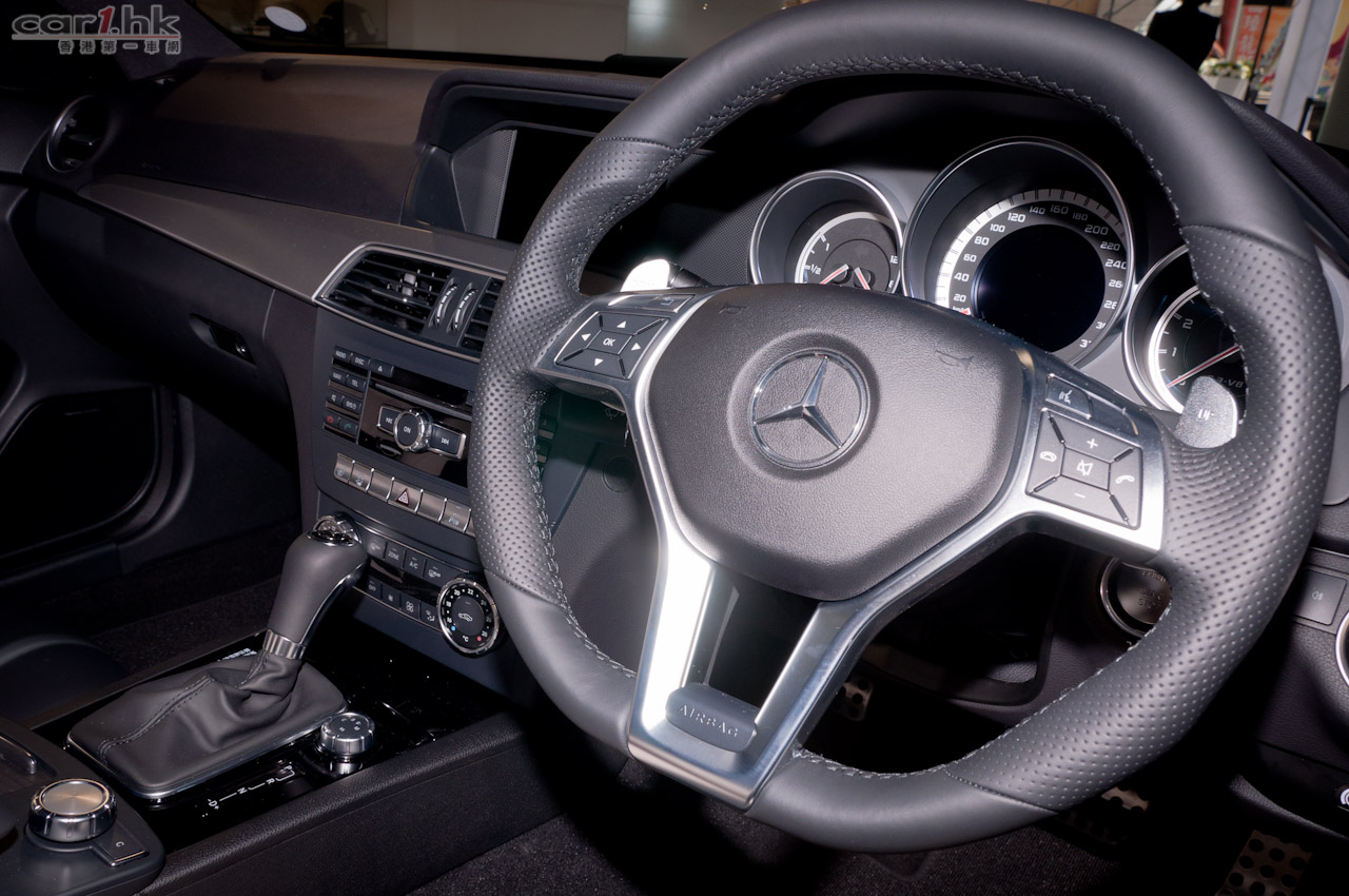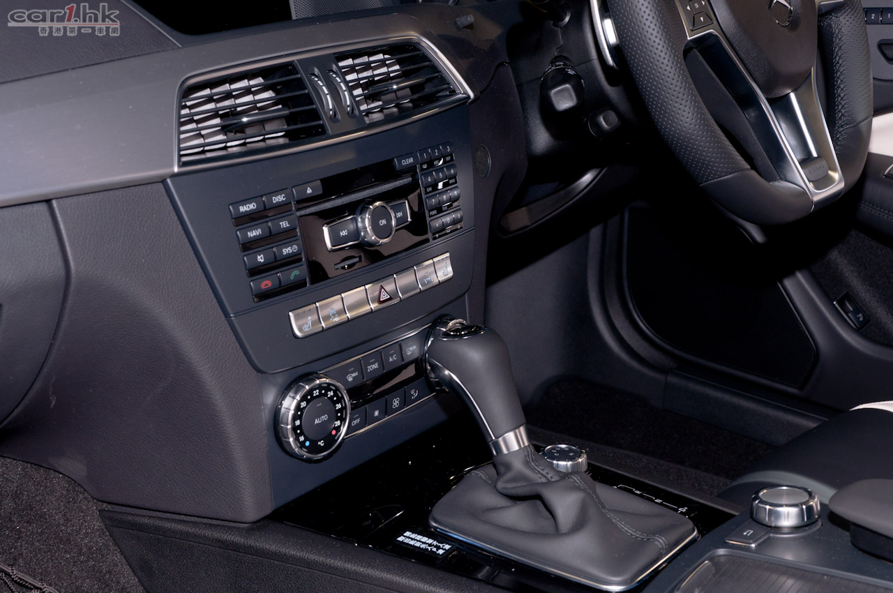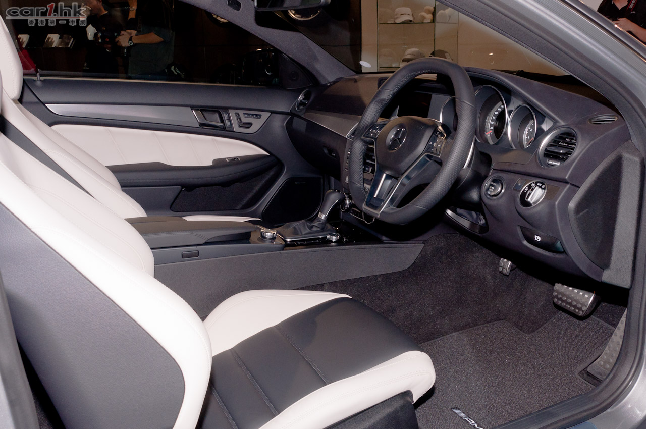 內籠方面,在 C 系小改款和 C-Coupe 的基礎下進行 AMG 級調校,三輻式跑車方向盤,新款的三環儀錶板組,中央的三維 TFT 液晶大螢幕、EASY-ENTRY 電子輔助功能、AMG 徵章和跑車式的橫紋縫邊。另外顧客亦可選配 AMG 碳纖維飾邊或亮黑鋼琴漆飾邊;或者自行決定使用四組單色,還是三組雙色組合選擇的 Designo 真皮裝飾。