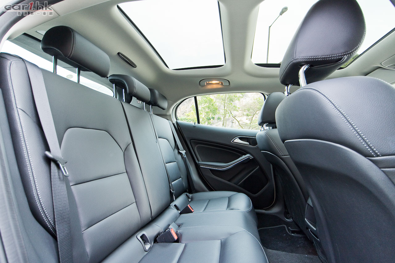 今次試駕的 GLA 200 針對入門車主或預算有限同時想感受到平治汽車舒適與豪華的人仕。雖然是入門版,但是配置一樣很齊全。車身外觀線條跟其他版本沒有太大分別,同樣簡潔觀感、輪廓分明。硬朗的車身外形由逐漸向前收窄的 C 柱突顯出來。分割的尾燈設計,令尾門設計寬裕。其旅行車加運動風格同時具備,所以深受年輕車主歡迎。車廂設備有恆溫冷氣、前後雙天窗、大型顯示屏中控台、手機免提等等。三幅式軚環、五個十字星型出風口,都令駕駛艙添加不少年輕活力感覺。車長達 4,417mm 的 GLA 200,後座的腳部和頭部空間也不錯,加上雙天窗設計,令後座乘客多一份開揚感。由於是入門車關係,後座未有冷氣出風口,如能添加的話是值得加分和令人感到貼心。而後座尾箱亦是很多買旅行車車主所注重一點,一般情況下已經有 421 公升容量,翻平後座的話,可提升至 1,235 公升,放入多個大型行李一樣無問題。