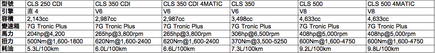 全車體積為 4.956m(長)x 1.881m(闊)x 1.413m(高),看似又長又大的車身,風阻系數(Cd)只是 0.29,有助省油。但是它的最大吸引之處,反而是平放後排座位後,車內空間可達 1,550L,想以高級形象載貨也沒有問題了。至於動力系統方面,CLS Shooting Brake 總共設有 6 個版本︰