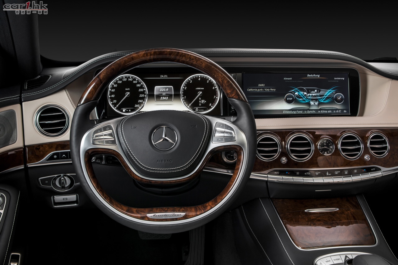 今次 New S-Class 的駕駛艙,刻意把錶板做得非常之大型,非常之長。全 LED 顯示屏下,感到非常之高科技。中央的顯示屏依舊顯示音響、地圖、空調資訊外,當然支持到平治最新的上網娛樂系統。今次車廂內裝,設計師刻意做到所以乘客好像被 New S-Class 抱住一樣,後坐門板、前座門板和中控台的木紋飾件連成一線,感覺比上代舒服和諧。軚盤改用了兩幅式設計,大家沒有看錯,是兩幅式設計,飛碟盤設計的軚盤,由觸特的內圈設計、皮革、木紋飾件和銀色飾件配合下,已令人感到走到未來似的。