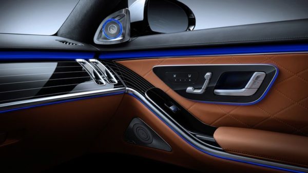 重點在於車廂設計,直列式中控台 12.8 吋 觸控螢幕早已公佈,但傳統儀表板改為全液晶 LCD 儀錶板,全新設計的中間四橫向出風口與兩側直立出風口,還有 4D Burmaster 音響系統、前後排座椅 18 向電動調校、車門扶手加熱功能和大量真皮包覆等等,而且第二代 MBUX 系統 ,內建 16GB RAM 與 320GB 硬碟,GPU 運算處理能力達到 691Gflops ,更快更穩定。最重要是新系統 MBUX Interior Assist 功能配備AI智慧學習特性,,例如彎腰到副駕駛找東西就會自動打開閱讀燈,以及系統記錄駕駛者或不同乘客利用手勢操控車內功能的習慣,往後可以預斷使用者的動作,提前做出調整。