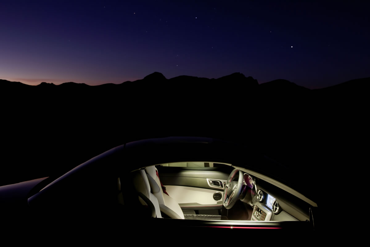除了較早時為各位報道的 Concept A-Class,亦有首度在中國出現的新款 SLK 350,這部第 3 代 SLK 系列車款,配備 3.5L V6 引擎,動力輸出達 306bhp / 275lb-ft,於 7 前速 7G-TRONIC PLUS 變速系統協助下,0-100km/h 僅需 5.5 秒,同級車實在難追!不過在動力及操控背後,SLK350 仍不忘 M.Benz 的豪華方案理念,因此它首度配上全景透明開篷式硬頂之餘,更設有 MAGIC SKY CONTROL,讓駕駛者可以自由切換至明亮或暗黑,調節照進車內的自然光度。在內地遠離城市區域後,大把機會可以安坐 SLK 350「晒月光」!另外它亦有 ECO start/stop 功能,協助省下不必要的燃料消耗。