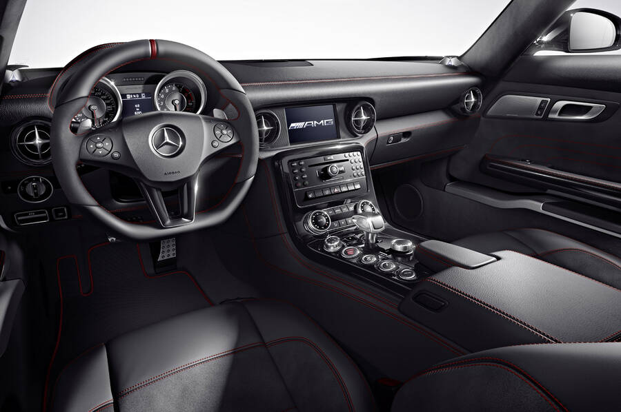 Mercedes-Benz 為 SLS AMG 推出 GT 版本,採用 6.2 升 V8 自然吸氣引擎,在動力系統經過調校後,最大馬力由原本的 571 匹提升至 6,800 轉時可輸出 591 匹,而扭力則維持在 4,750 轉時爆發 650 牛頓米。7 速 AMG 雙離合器波箱亦經過修改,轉檔時間更短,補油更直接,令 SLS AMG GT 由 0 加速至 100km/h 只需 3.7 秒,極速為 320km/h。另外,SLS AMG GT 使用 AMG Ride Control 跑車懸掛,在 Sport 及 Sport Plus 模式下擁有更出色的操性和動態,在普通路面選擇 Comfort 模式時也可享舒適輕柔的駕駛感。