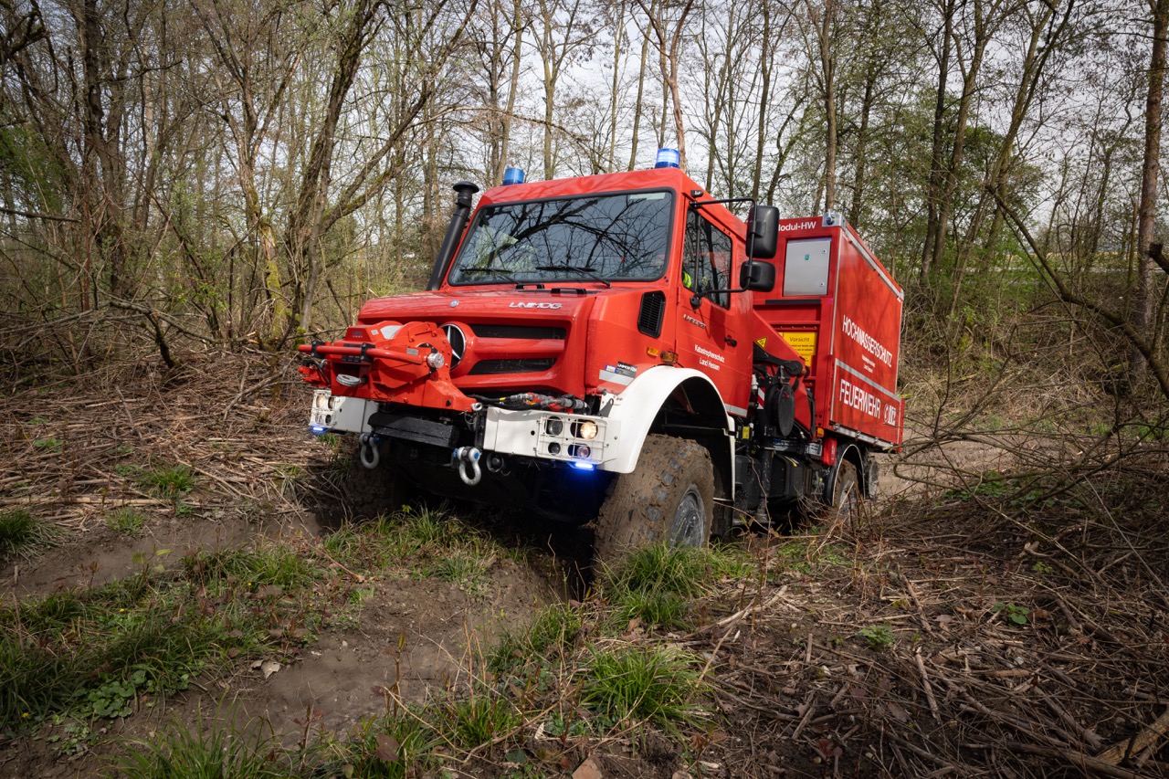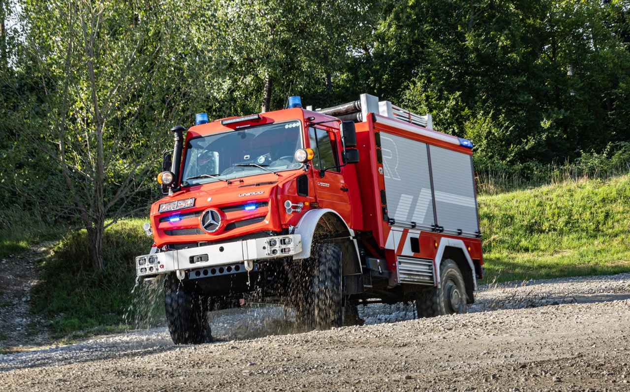 Unimog U 5023配備了符合消防部門標準DIN-14530-22的TLF 3000要求的Rosenbauer車身。儲罐容量為3,000升,滅火劑通過符合DIN EN 1028的FPN 10-2000離心泵施加。客戶還可以根據需要添加更大的泵容量和額外的噴霧棒。每側兩個設備隔間和車輛後部的一個設備隔間提供必要的存儲空間。可摺疊、防滑的踏步便於訪問設備隔間,而階梯照明進一步提高了夜間應急人員的安全性。為了在黑暗中操作,配備了每米約5,000流明的環境照明,其他設備如照明塔也可以添加。