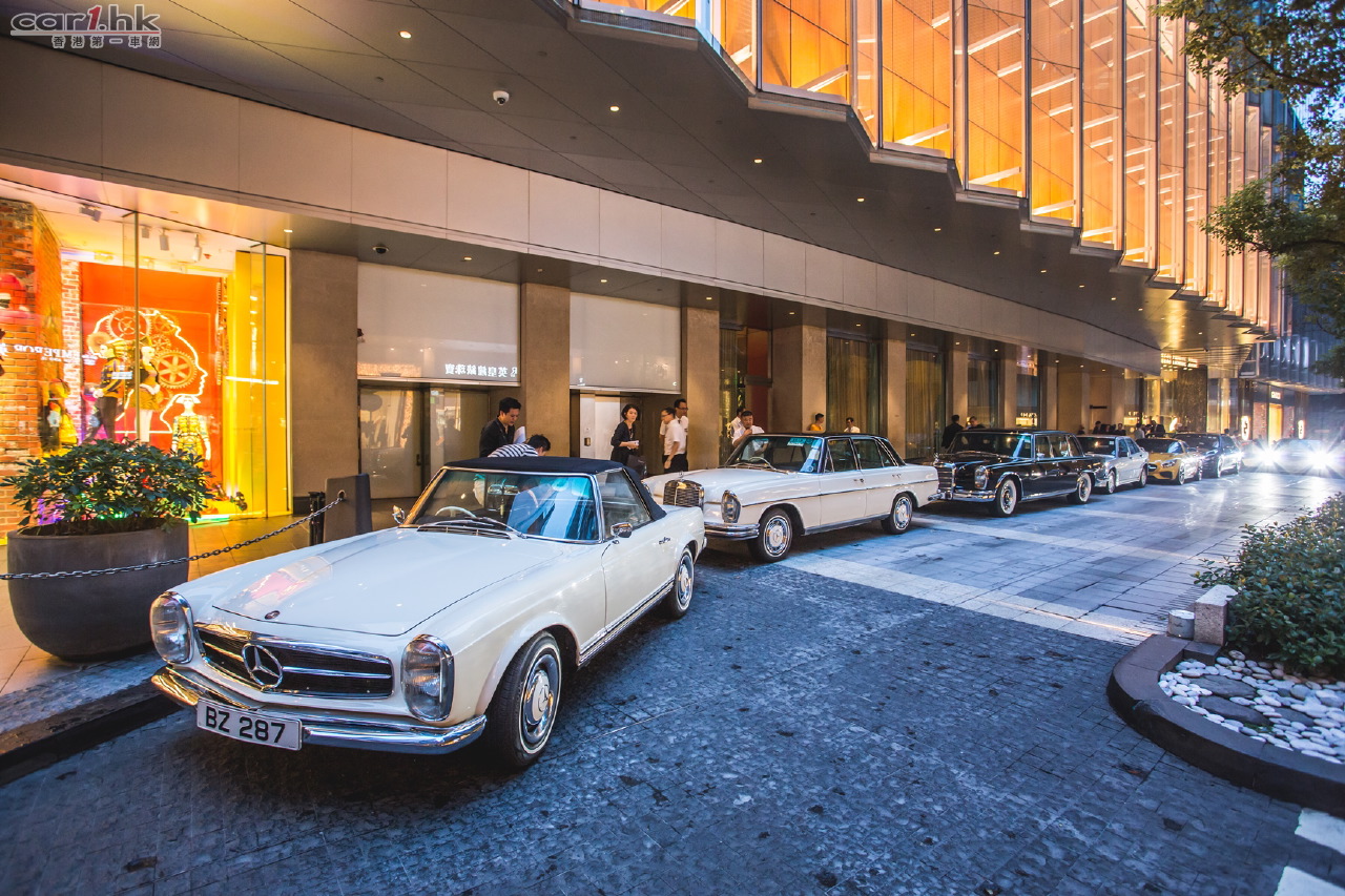 開幕派對開始前,品牌派出七輛平治汽車組成巡遊車隊,接載貴賓前往Mercedes me概念店。這隊「繼往開來」的平治巡遊車隊成員包括平治230SL (1960年代)、平治280S (1970年代)、平治600 (1970年代)、平治190E (1980年代)、Mercedes-AMG GT S (2015年)、Mercedes-Maybach S500 (2015年) 及平治F015 Luxury in Motion概念車。車隊中亦有來自不同年代的平治知名型號,展示出豪華旗艦車款、高性能車款及環保車款三大類別的特性。