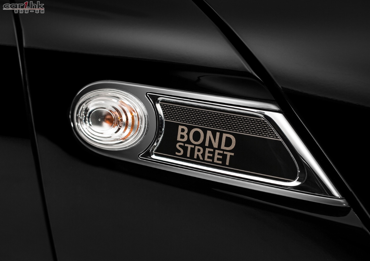 這款車型設計首次將前霧燈與鍍鉻裝飾條結合使用。標配的自動恆溫空調、 車載電腦、運動按鈕、具有自動車燈控制的雨量傳感器、配備多功能按鈕和定速控制功能的皮製方向盤以及高度可調的前排乘客座椅,賦予整車更多的駕駛樂趣和舒適性。除此以外,MINI CLUBMAN Bond Street 版的儲物箱和車燈套件還採用了頂級裝備部件。在中國市場,這款全新的MINI 設計車型提供兩款汽油發動機型號:除MINI COOPER CLUBMAN 配備的88 千瓦/120 馬力發動機之外,還提供MINI COOPER S CLUBMAN 的135 千瓦/184 馬力發動機, 均配備六速自動變速箱。
