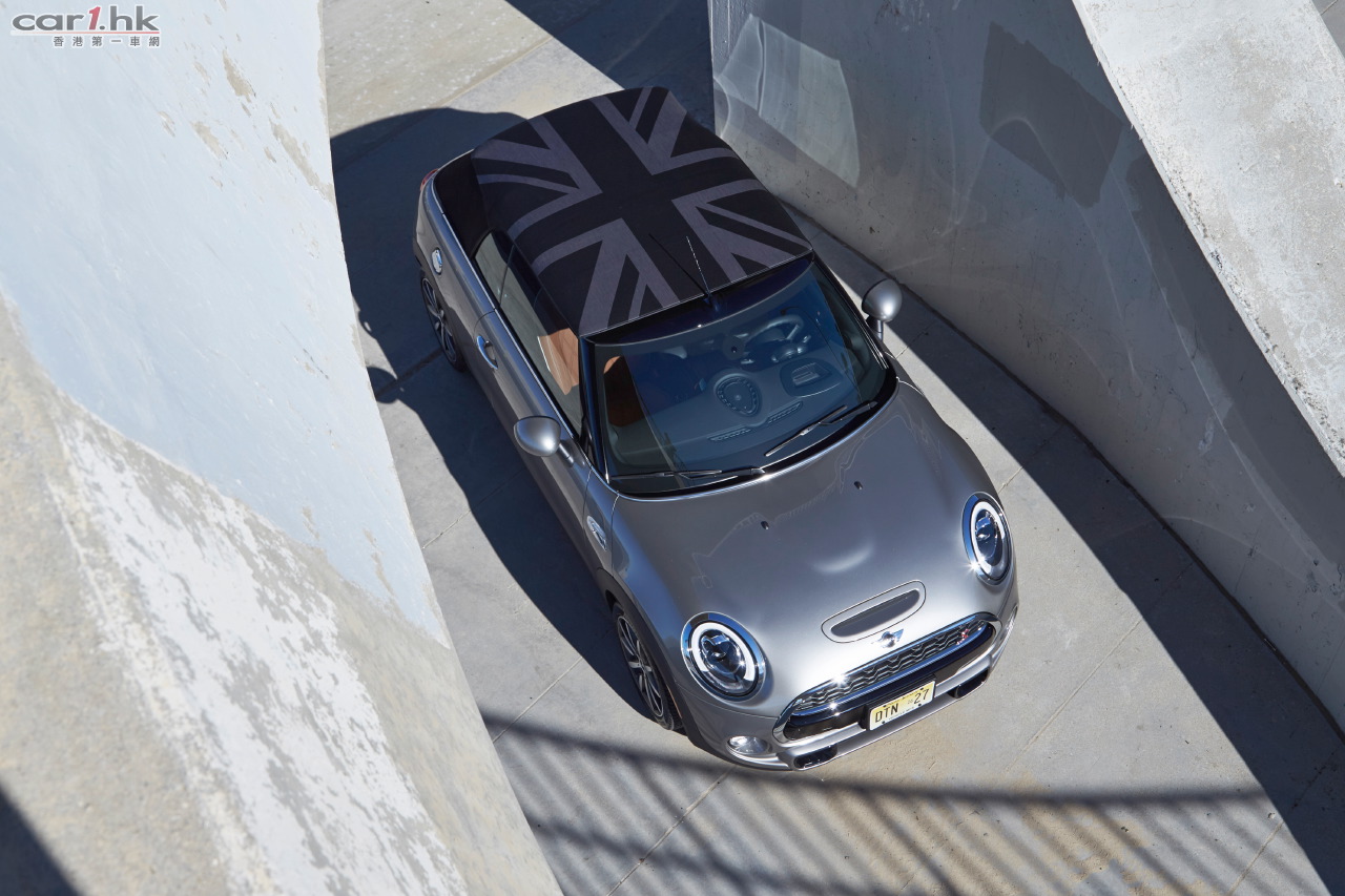 MINI Convertible的軟布頂篷設計,早於1992年推出開篷版Classic Mini之時已首次出現,具有加固兩側和強化車身的作用。MINI Convertible一向追隨者眾多,新一代的推出,正好為駕駛者帶來清新愉悅的享受。新車的軟篷屬全自動操作,備出色的隔音功能及防翻滾保護設計,僅需短短18秒便可完全打開或關閉,更可在時速30km/h之下操作。當頂篷關上時,多層物料有效隔走外間噪音,為長途駕駛提供寧靜舒適的新體驗。全新頂篷更配備滑動裝置,令軟篷的前半部在任何車速下可自由趟開達40cm,讓新鮮空氣引進車廂。標配的軟篷為黑色,但部分首批到港的現貨均備上選配的英國米字旗MINI Yours軟篷,以黑灰雙色高級人字紋編織而成,與品牌起源英國相互輝映,成為新一代MINI Convertible獨一無二的個性化設計。