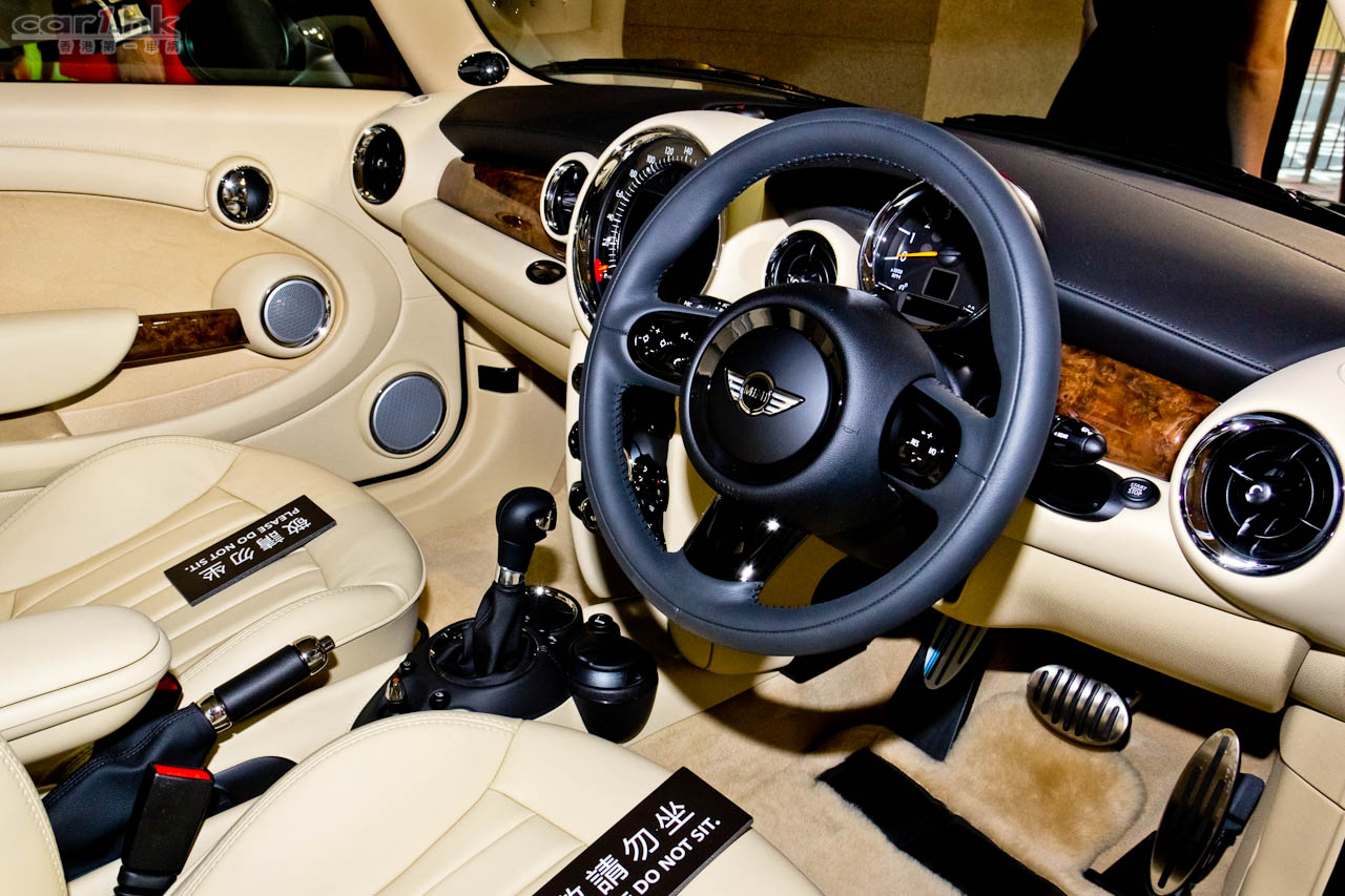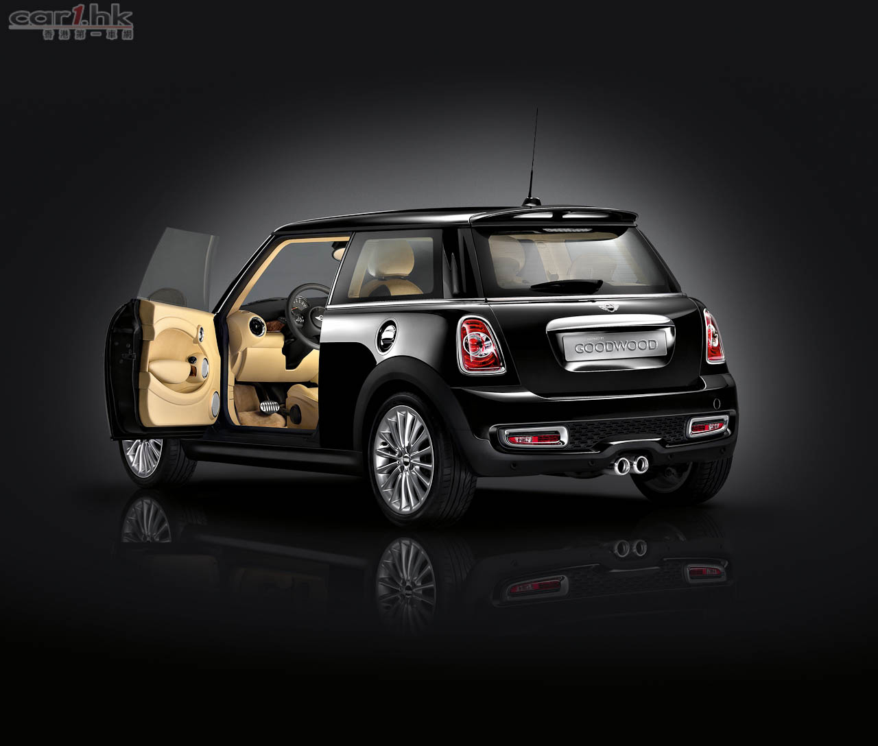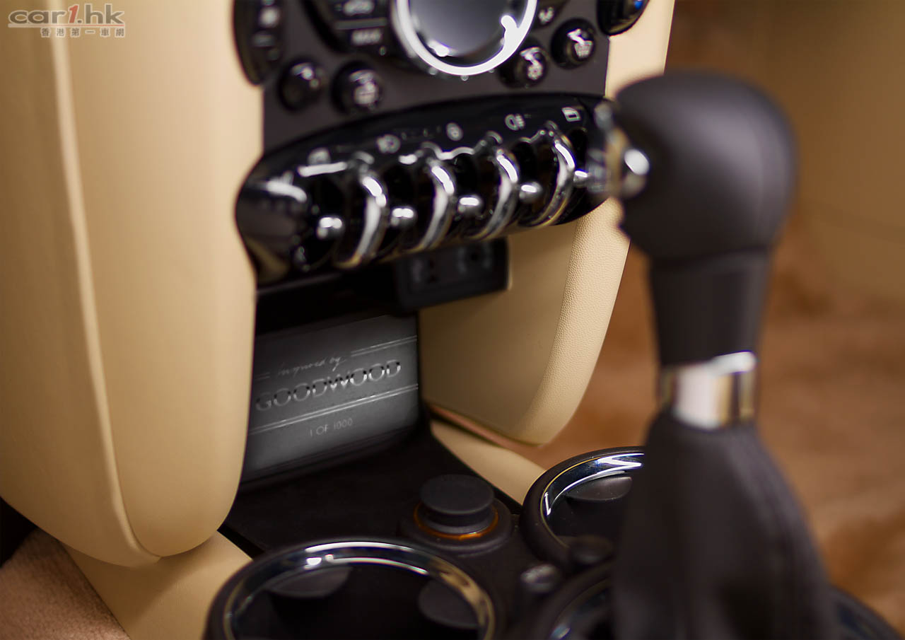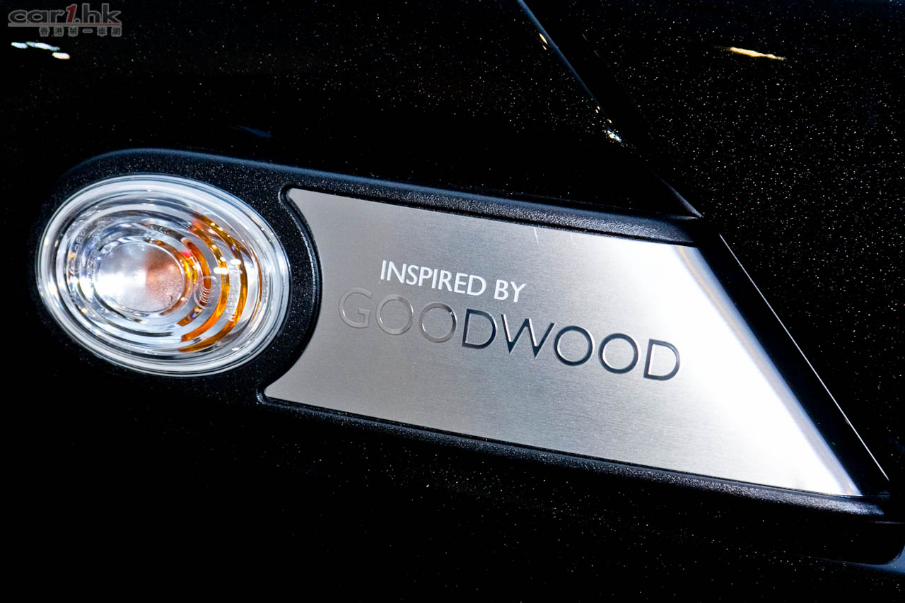 這架車與 Rolls-Royce 聯手開發,MINI Inspired by Goodwood 當然充滿豪華氣派,車身顏色採用 Rolls-Royce 專屬的黑鑽 (Diamond Black Metallic),再加上 Inspired by Goodwood 的專屬徽章,凸顯尊貴身份。而儀錶板、揚聲器及冷氣出風口使用銀圈裝飾和中央控制台用真皮包嵌提升品味,還有羊毛地毯、真皮梳化座椅、高級胡桃木飾板及大量採用Rolls-Royce 專屬的玉米穗色真皮,英倫小伙子搖身一變成為高貴紳士。其他標準配備包括 Rolls-Royce 專用 Cornsilk Beige Leather 真皮電熱座椅、主動式轉向頭燈、多功能方向盤連巡航系統、Sports Button、動態穩定控制系統(DSC)、泊車距離警報系統(PDC)、多媒體顯示屏及 Harman / Kardon 音響。