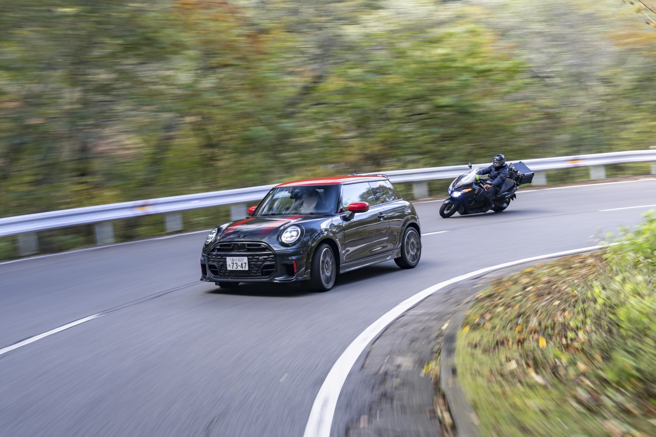 Irohazaka公路是連接日光國立公園與奧日光高原的通道,以其極端蜿蜒的48個髮夾彎而聞名於世。要征服這條路,對車輛的性能、制動與底盤功架均是極致考驗。今次的主角MINI JCW三門版,其心臟是一具強悍的2.0公升四汽缸Twin-Turbo(雙渦輪)增壓汽油引擎,可爆發231匹(170 kW)馬力,以及令人驚訝的380 Nm峰值扭力。這股強大的扭力,配合反應迅捷的七前速雙離合器自動波箱,意味著JCW在攻克每一個急彎後的出彎加速,都能提供猛烈的推進力。