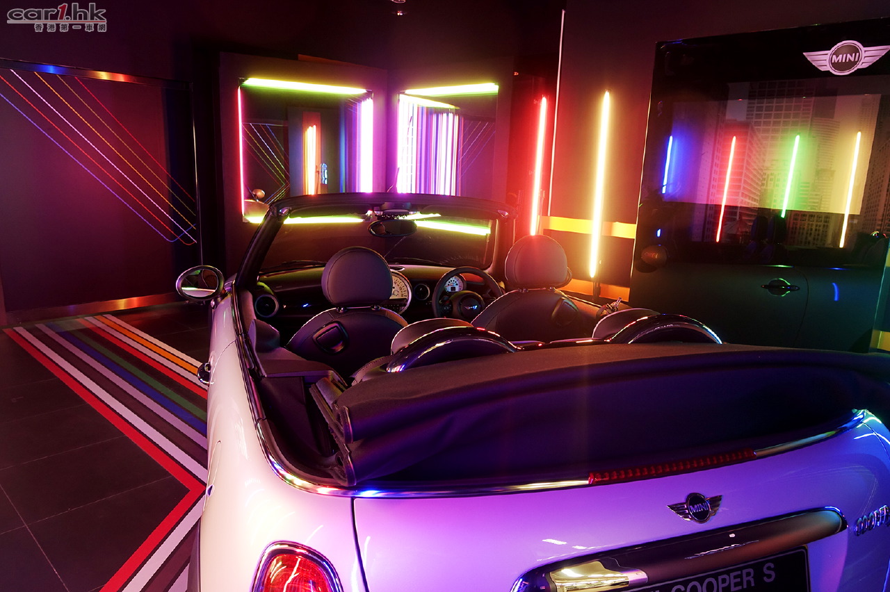 一向走在潮流尖端、支持無限創意的MINI Hong Kong,第三年與香港理工大學設計學院合作,創建全港首個多元感官【MINI PULZE】互動藝遊裝置,打破科技與藝術的界限,注入個性化人文元素,讓酷愛駕駛的朋友鑽進MINI Cooper S Cabrio中,邊按軚盤邊大玩音樂霓虹燈光秀,初嚐獨一無二的「藝遊車河 x Neon Jam」後現代奇藝新體驗!由即日起至8月31日(星期日)假荃灣MINI Showroom舉行,讓愛創意愛車一族體驗「科技v.s.藝術」新極限。體驗期間,將有專人協助以手機拍攝短片,玩家如上載個人獨一無二的Neon Jam短片至Facebook,更有機會贏得MINI Collection潮飾!