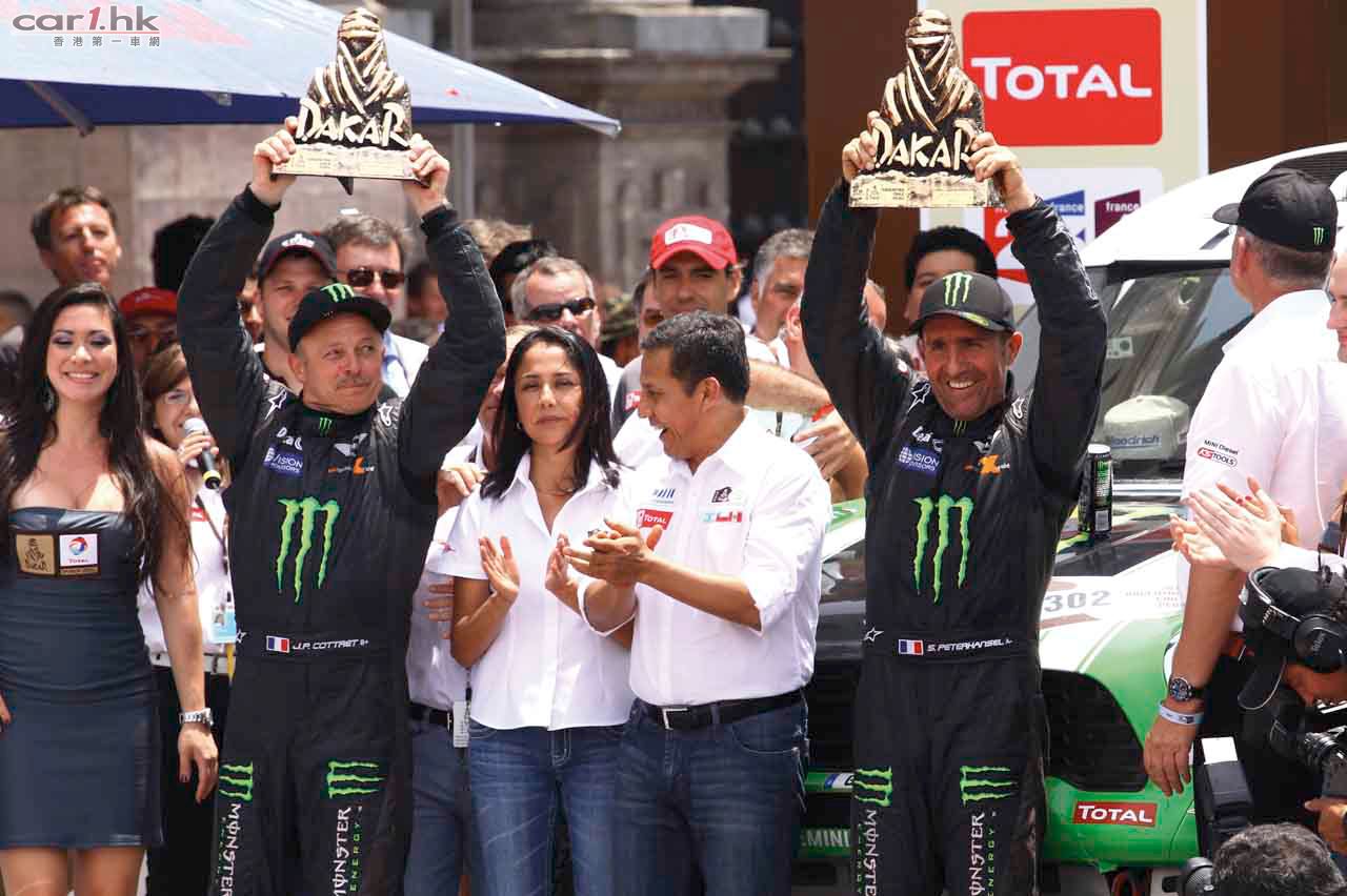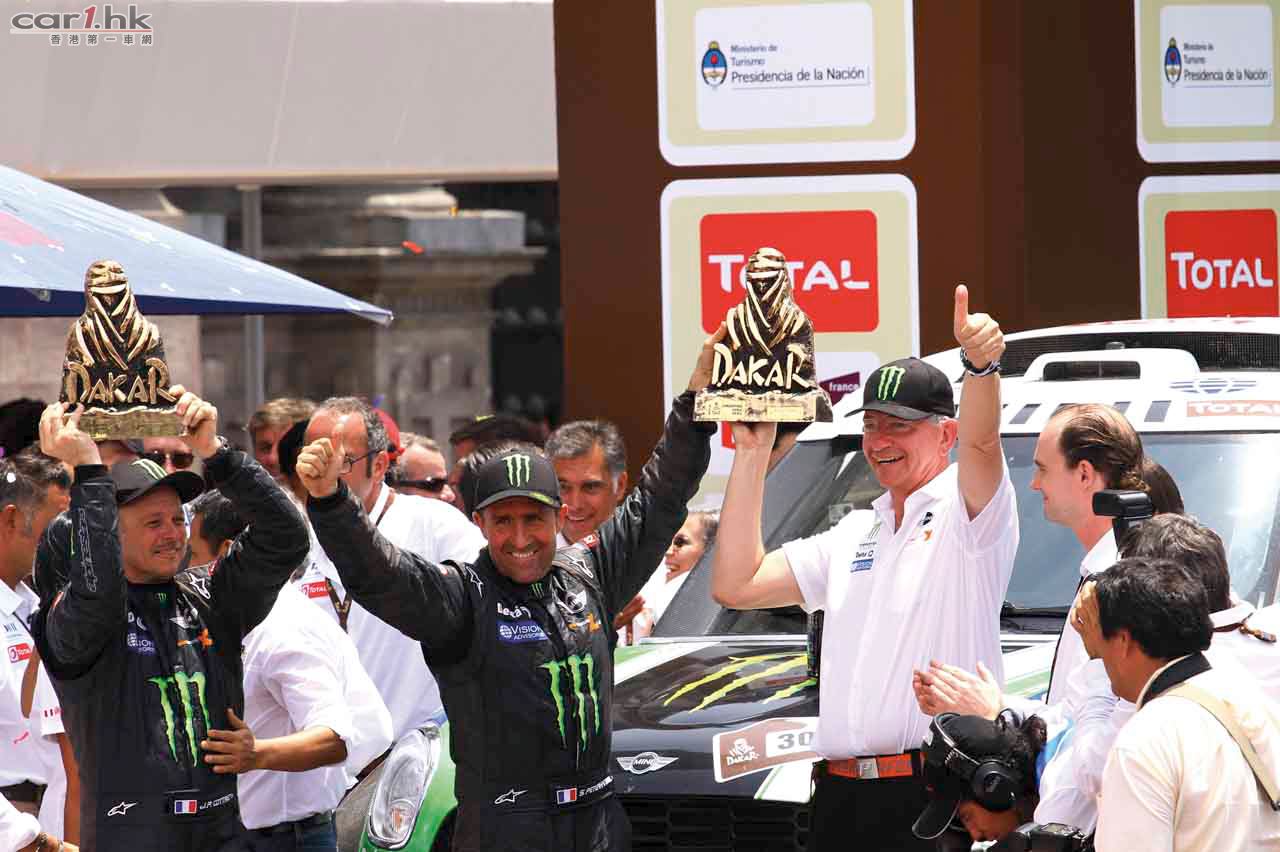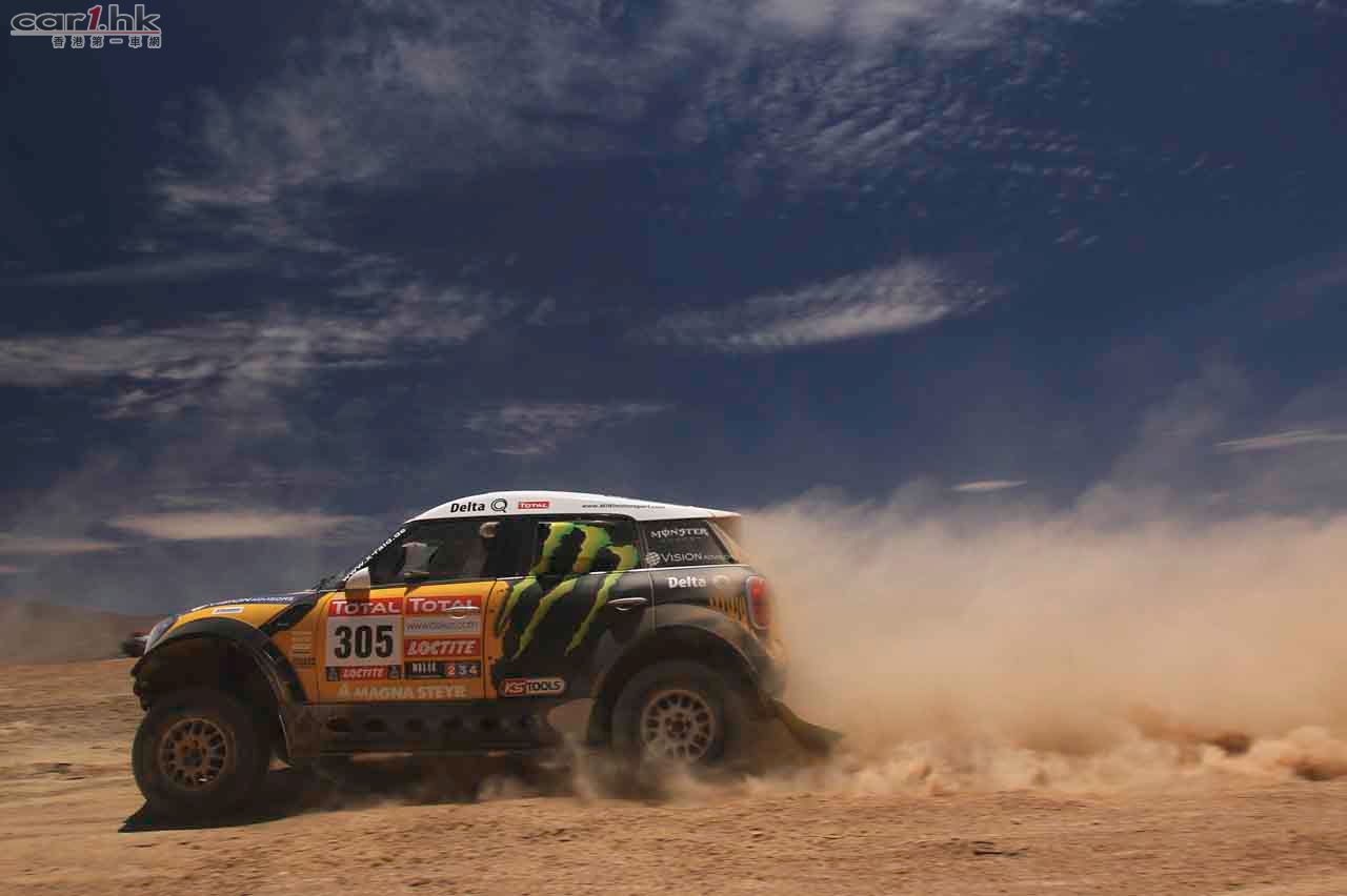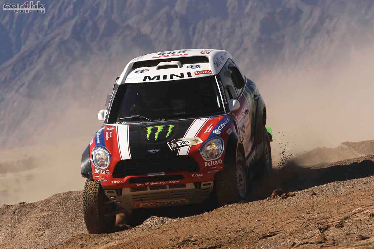 而踏入 2012 年,MINI ALL4 Racing 車隊以 MINI Countryman 為基礎設計的賽車 先拔頭籌。於一年一度極具挑戰的 Dakar 耐力越野賽中,由賽前已是九屆 Dakar Rally 冠軍的車手 Stéphane Peterhansel 從南美洲阿根廷的起步點,花了 38 小時 直奔位於秘魯首都利馬 (Lima) 的終點勇奪冠軍。勝利者 Stéphane 表示他出賽前 已經預言「This MINI is ready to win the Dakar!」,果然可靠的 MINI Countryman 賽車為他帶來第十屆冠軍。而正因為出賽的五輛 MINI Countryman 賽車全部均以 頭十名完成賽事,MINI 這名稱已於越野賽車界成為其中一大爭標份子!