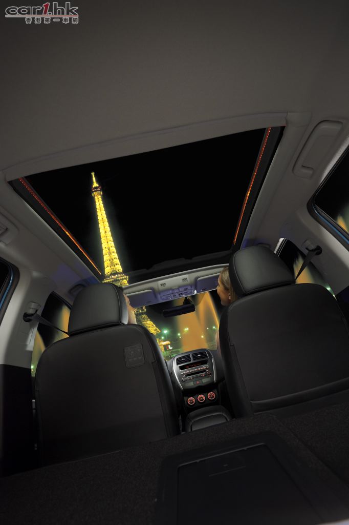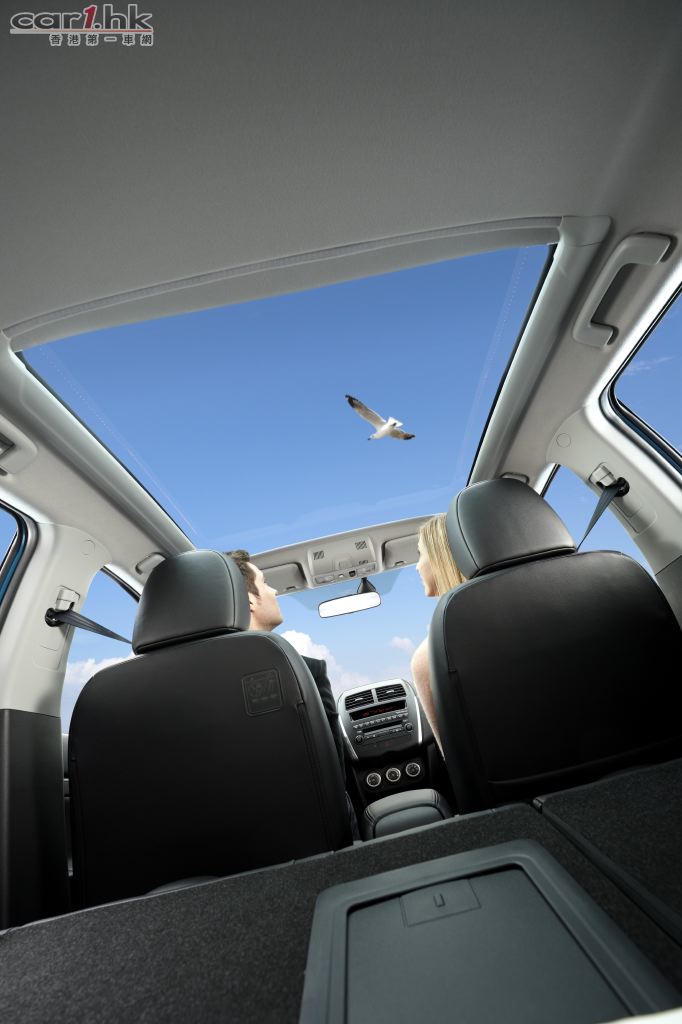 用全景玻璃車頂,日間提供開揚及寬敞感覺;玻璃頂部兩旁裝有琥珀色 LED 照明燈,為晚間營造浪漫的氣氛。車廂採用動感的高品質跑車式黑色設計及銀色車頭燈,倍添活力十足,原廠真皮座椅連司機席電動調校,舒適並高貴大方。車身備有8隻顏色可供選擇,其中包括兩隻全新顏色“鈦金屬灰”和“翡翠鳥藍色”(日稱 Kawasemi),此色非常別緻,它象徵了 ASX 的高度環保特性及輕盈感覺。