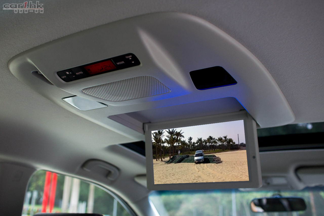 原廠影音系統除了提供後座顯示屏外,同時備有無線耳筒和遙控。