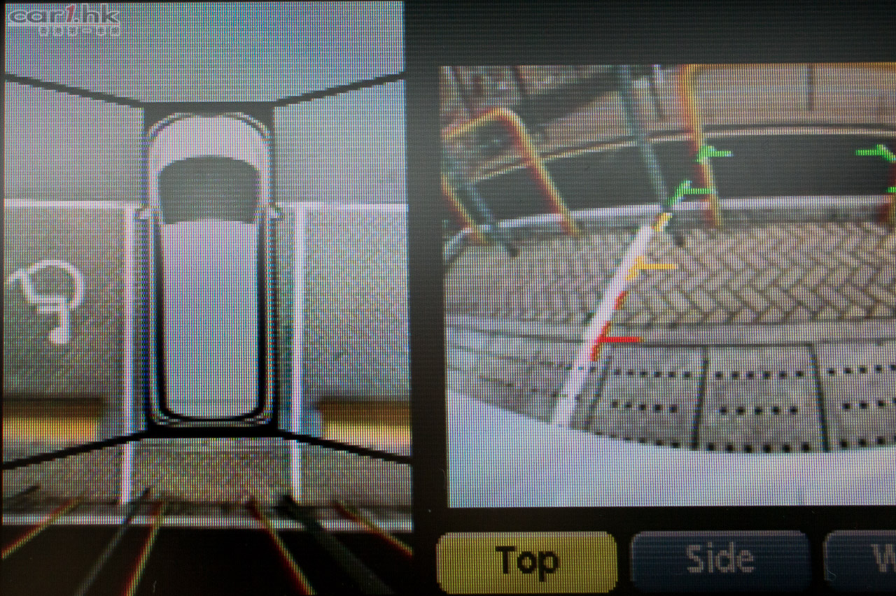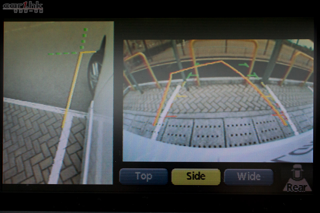 其實 Around View Monitor 環視顯像系統早在日本本土版的 Nissan 車款上出現,可惜操作介面只有日文版,難以取得外地用家歡心。今年,Nissan 終於為這個 Around View Monitor 環視顯像系統推出英文版,令 ELGRAND 泊車、開車時更加得心應手。Nissan 在這架 ELGRAND 的車頭、車尾和兩側倒後鏡安裝了超廣角鏡頭,把收集回來的影像重組,並在中控台顯示 360 度高空鳥瞰模式(Top View)、前方、後方和左右兩側的影像。當中以 360 度高空鳥瞰模式最好使好用,就像車外有四個朋友幫你睇位一樣,配合音頻感應器、彩色車位輔助格線和軚盤轉向輔助格線作出提示,令最難泊的 S 位都簡單、快捷完成。