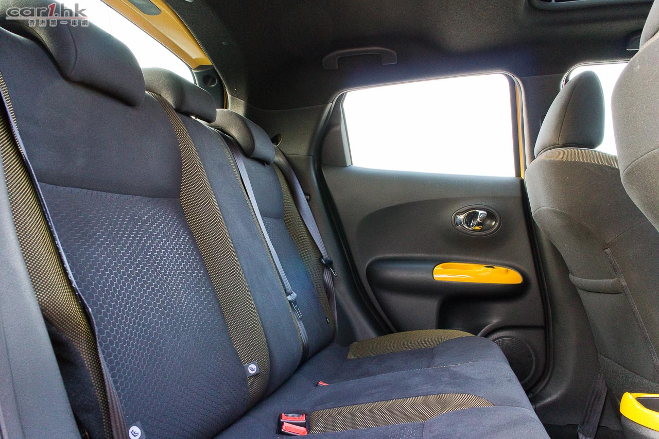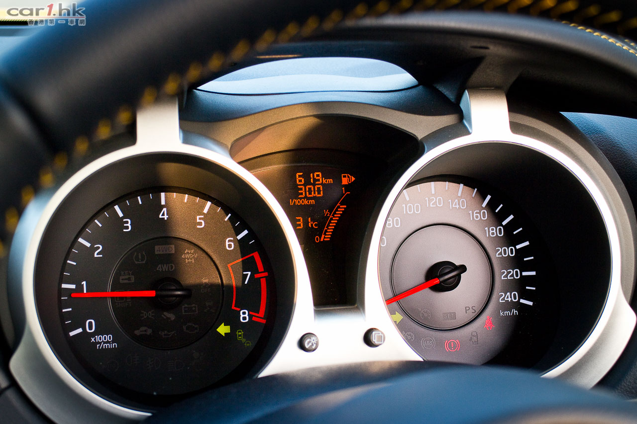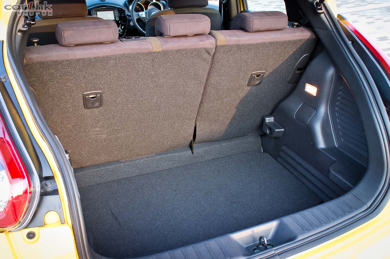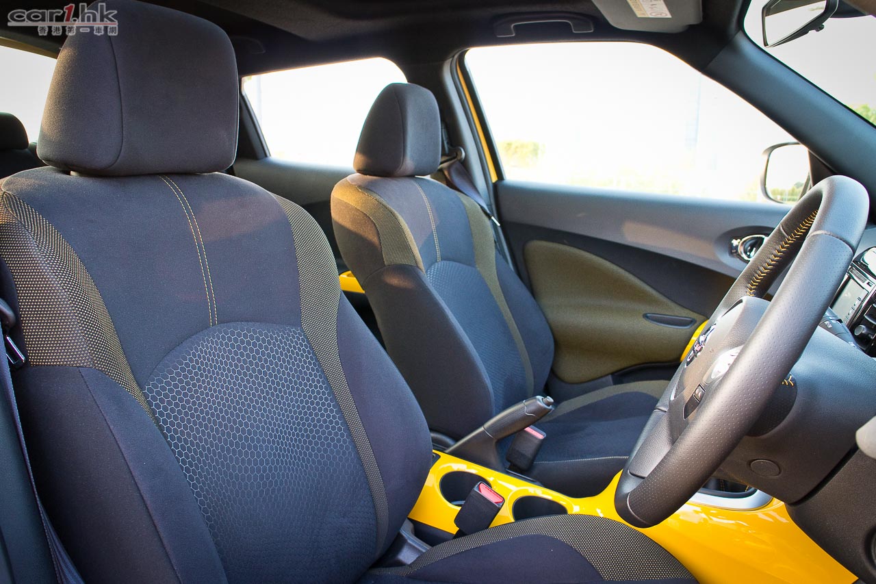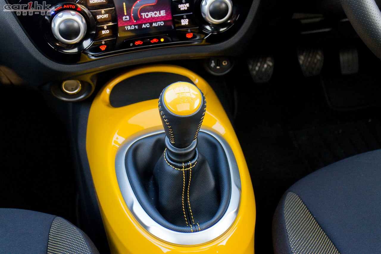 車子 0-100 km/h 需普普通通的 10.8秒,比需 11.5 秒的 1.6 CVT 型號快;而 5.6L/100km 的平均耗油量更比後者(6.3L/100km)慳。車子起步時要等等渦輪壓力出現,起行後扭力平均,然後是坐著的等待紅線到臨;出奇地寧靜的引擎,踩至 6,500 轉紅線也不算嘈雜,我們可能受「turbo」和「棍波」所影響心情,老是覺得其聲浪可野性一點;在較低轉數時收油,還可聽到 turbo「吱吱…吱吱…」的放氣聲;收油再踩油間,要稍等 turbo 壓力再現,即有少少 turbo lag。美觀的波棍,同樣有顏色飾蓋,棍波行程順滑、就手,然而 brake 腳踏和油門位置並不利做 heel-and-toe 拖波,影嚮走彎時拖波的樂趣。懸掛提供的乘坐感覺,是正常日式房車的柔軟舒服,我們並不介意硬化一點的懸掛以符合 Juke 那異類的定位。I-CON 系統的「D-Mode」一如以往,軚盤在 Normal 和 Sport 模式間有感受得到的輕重分別;而對這部 1.2 Turbo 的油門反應影嚮則較 1.6 型號明顯,按 Sport 的一下子,turbo 像是突然谷大淡氣的將車向前推一推,頗好玩。Juke 的 1.2 DIG-Turbo 和 1.6 CVT 型號售價一樣是 $249,800,怕開棍波或是喜歡 turbo 反應的,選擇相當容易。