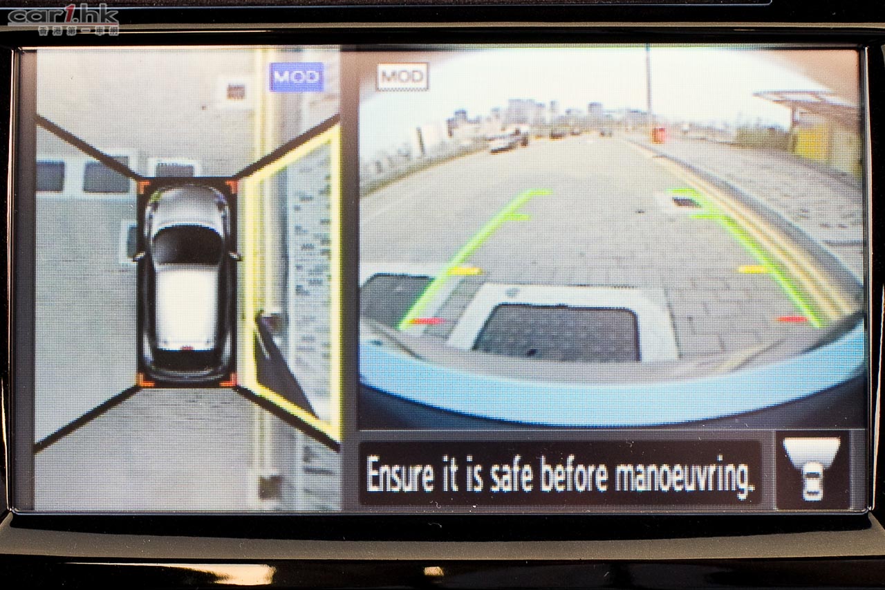 與其他更豪華的新日產一樣的 AVM (Around View Monitor),憑車外鏡頭將影像組合成 360 度鳥瞰式顯像,大大方便泊車。