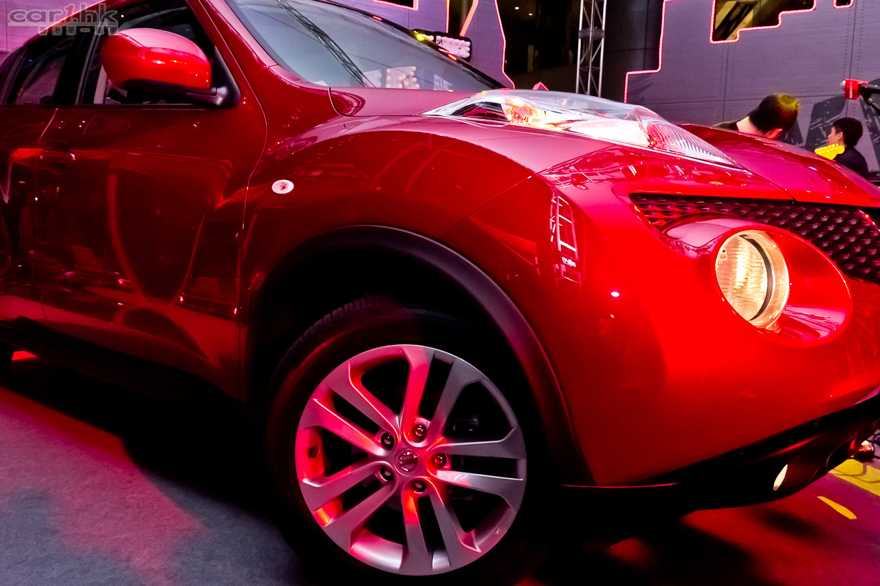 車身小巧的 Juke 融合小型轎跑與 SUV 的特性,擁有雄厚肌肉線條的突出設計,後門把手隱藏於 C 柱窗框之內,營造 coupe 跑車的效果,還有首創上至下分別是指揮燈、大燈及霧燈的三層式頭燈設計,整體散發出強烈的大膽氣息。內籠方面,採用大量的圓形與孤形設計,加上鮮明的顏色對比,令車廂極豐動感,就正如黃貫中在 Party 中流汗吶喊演唱的 Rocker 精神,Juke 是最適合年青一代的全新玩味潮車。Juke 擁有如 SUV 般的乘坐高度,能夠提供更寬闊的視野,而且較高的車身和尾部較闊,所以不論是前排或後排也有充裕的頭部和腿部空間。另外,駕駛者可以選擇「一般 Normal」、「運動 Sport」與「環保 ECO」等三種不同駕駛模式。至於 Dynamic Kit 包括有前 / 後下擾流裝飾、車尾頂置擾流、車側電鍍套件與前後輪泥擋。