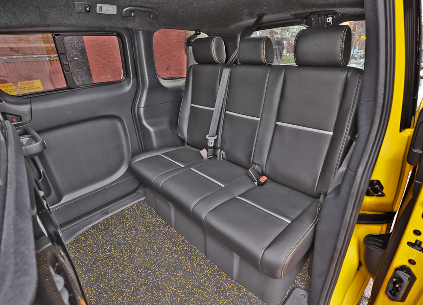 NV200 綜合了日產廠方、Taxi Limousine 協會、Cooper Hewitt 國立藝術館,以及的士司機、車主和乘客的意見,並考慮到公共空間及智能應用需要。所以它不僅可以乘坐 4 人及行李,而且車門改用趟門、加設輔助腳踏及扶手方便上落客,乘客位設有獨立冷氣出風口、閱讀照明、地台照明、12V 車用充電插頭、USB 端子 2 個,從多角度方便乘客。車頂採用全景車窗設計(備有太陽擋),對於遊客來說更是不可多得的設備。