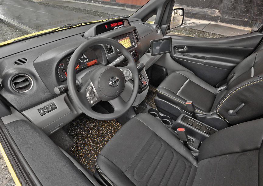 另外在 NV200 的駕駛席,設有 6 方向轉動座椅、USB Audio 輔助輸入,以及支援倒車鏡頭及衛星導航顯示的中控台顯示屏。由於紐約的士一向以透明膠板分隔前後座,因此 NV200 配備前後座對話用裝置。日產表示 NV200 採用 2.0 升直 4 引擎,並保證能夠行走 15 萬英里( 24 萬km)路程。它將會在墨西哥的工廠生產,定價 29,700 日圓,最快可於 2013 年下半年正式引進並投入服務。