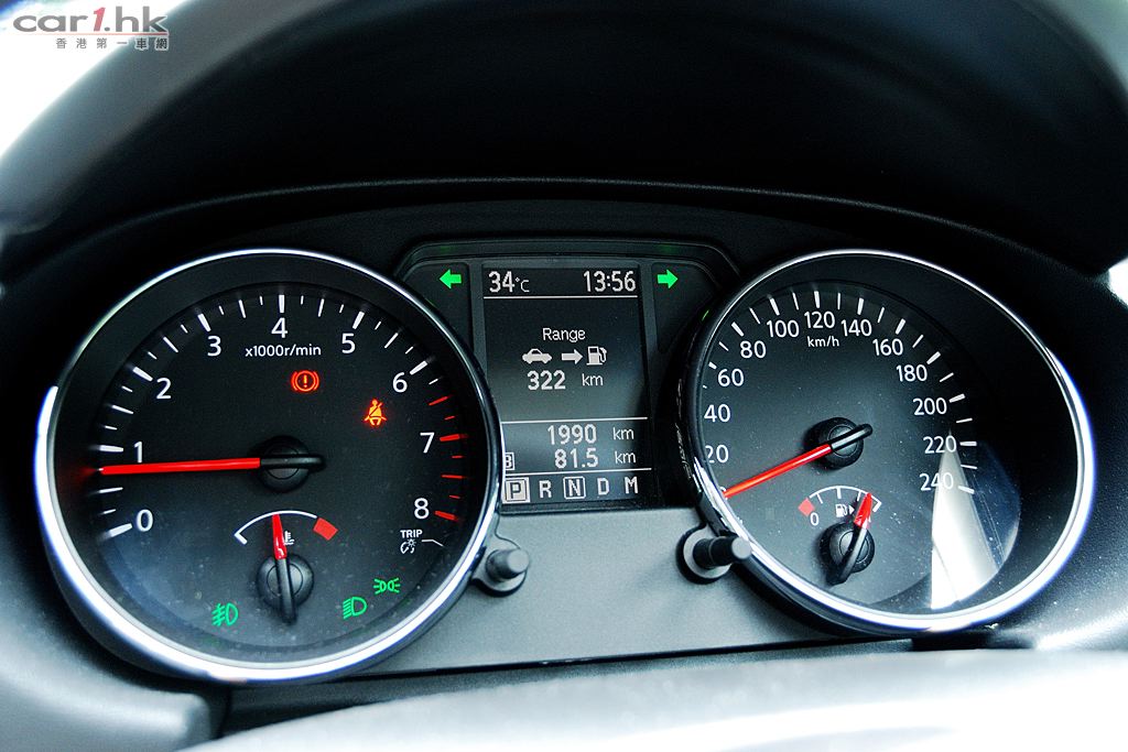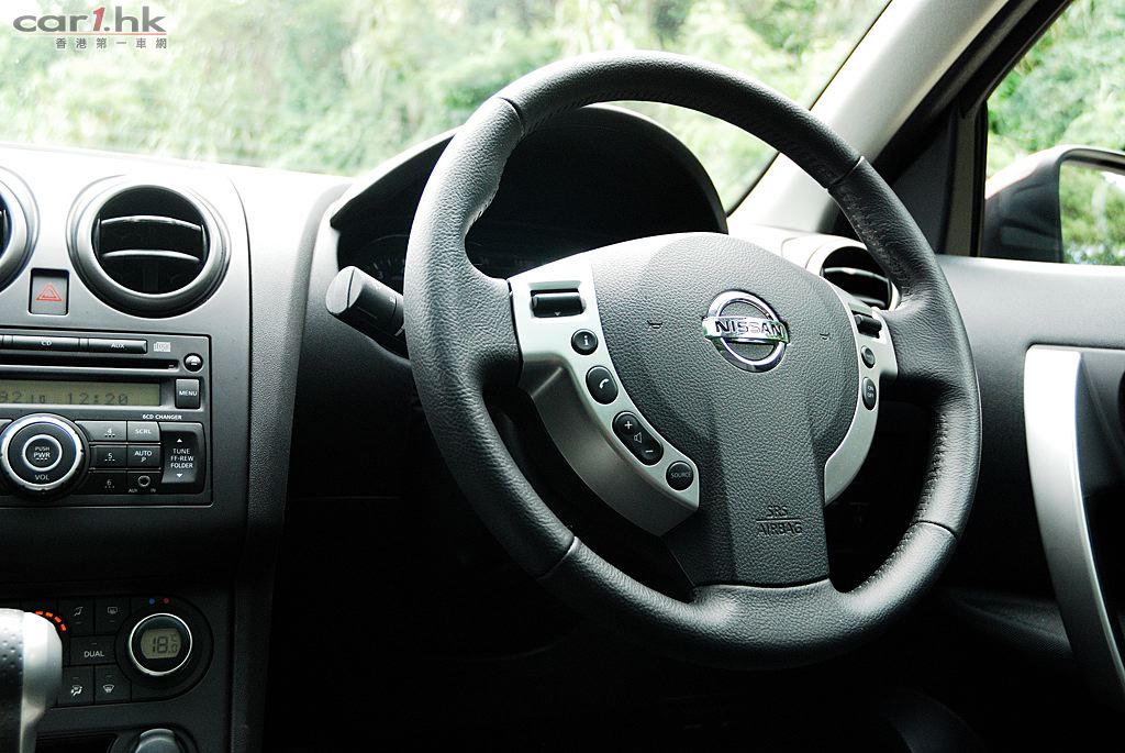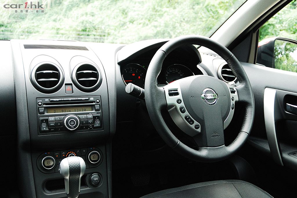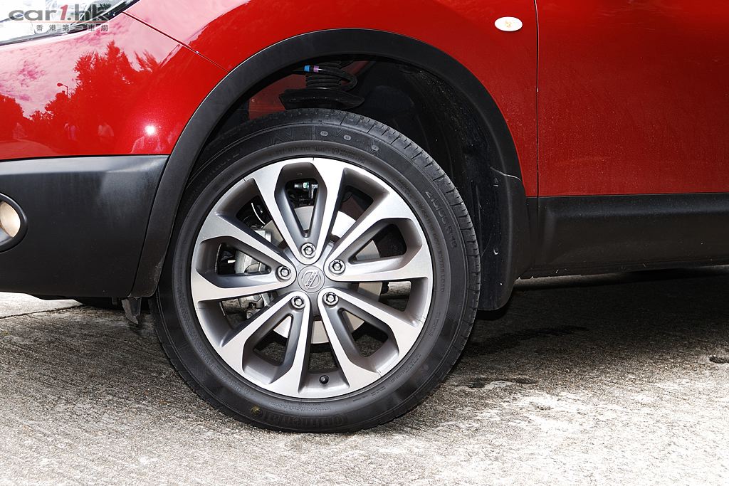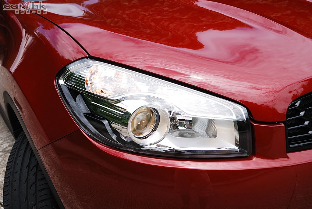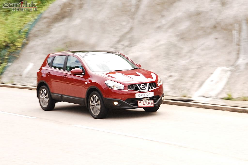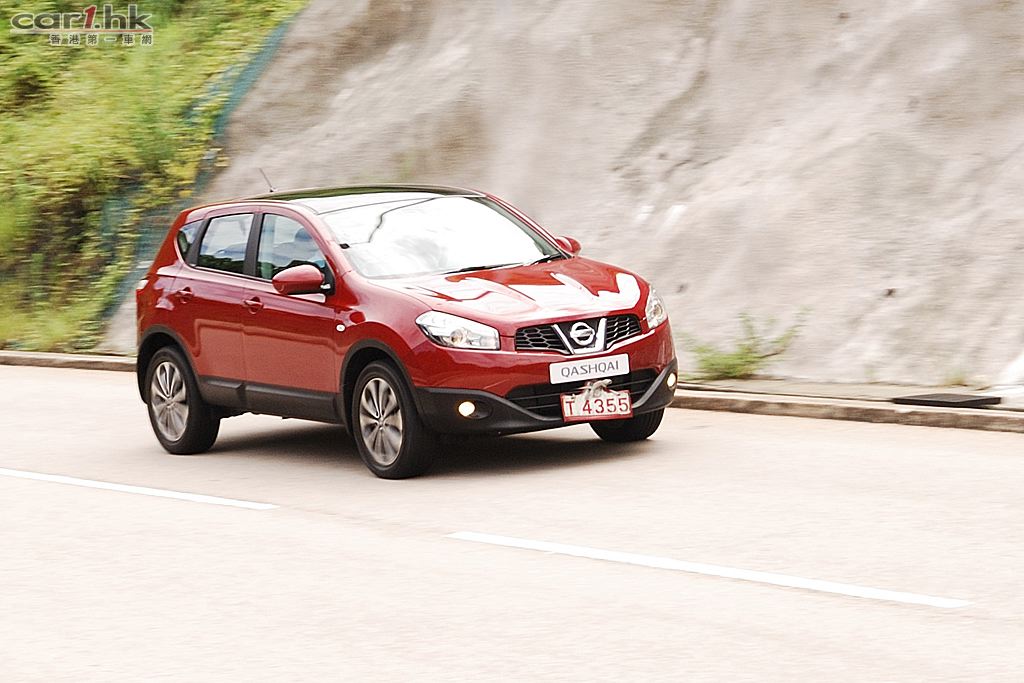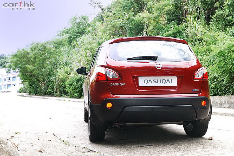 今次代理借來的是 Nissan QASHQAI 五座英國版,車身火紅色,陽光下很搶眼,由於是旅行車關係,它的離地距離也較高,加上超大 Nissan 車章、鬼面罩、頭燈和霧燈多方面配合,氣勢不遜於歐洲品牌的旅行車。QASHQAI 五座版本在車鈴方面改用了 18 吋,試駕時穩定度十足,穿梭清水灣一帶無難度,即使五座版為前輪驅動,全程試車時感覺良好,加上軸距縮短了,軚盤反應更為敏銳。