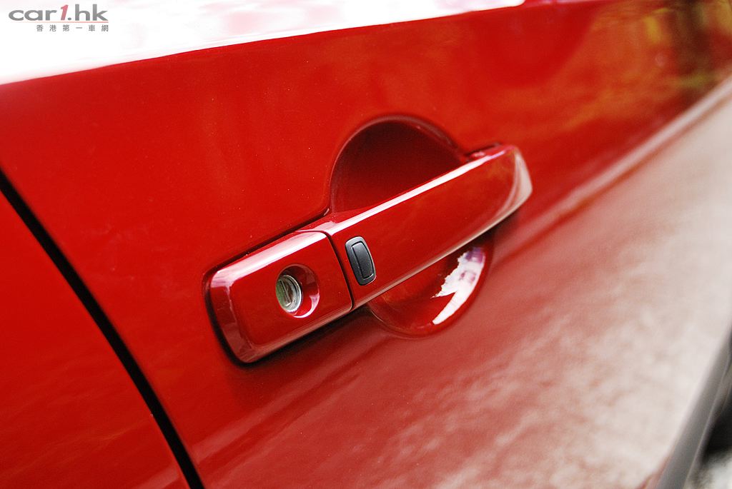 由於配備無匙系統,開啟車門時只需按下這個黑色鍵即可。