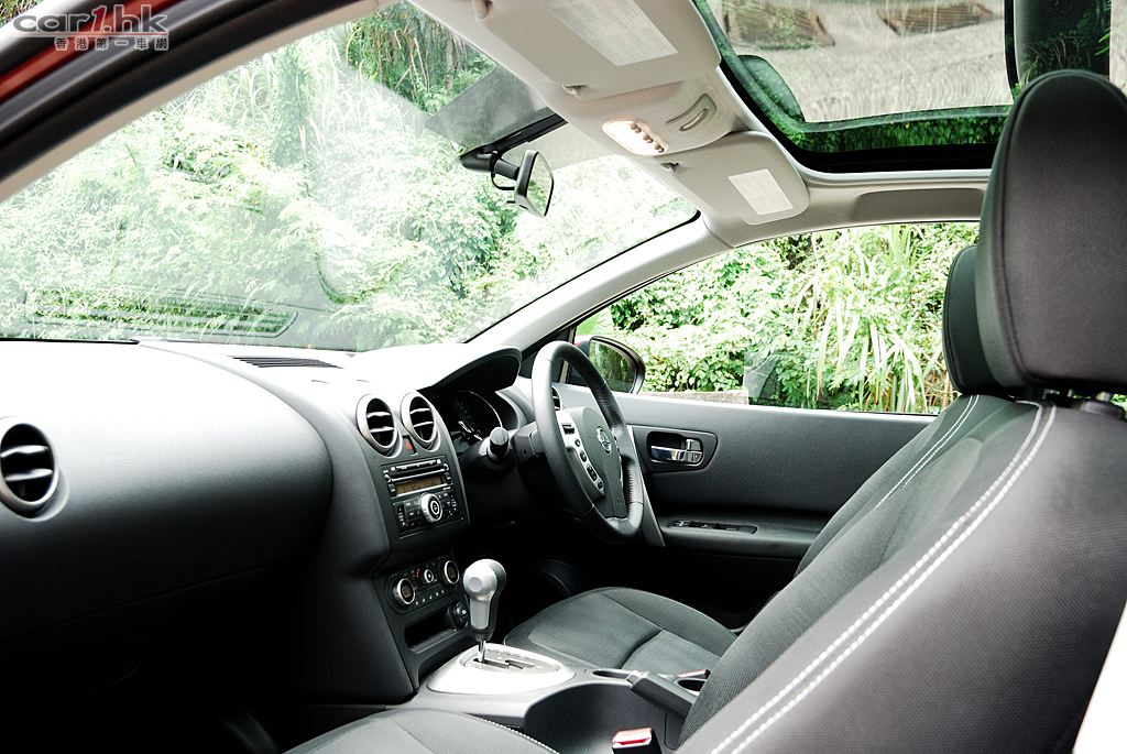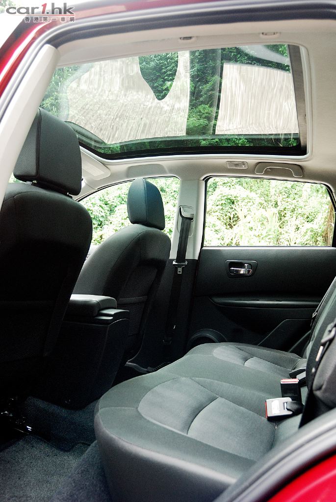 QASHQAI 五座版的配置也大量運用電子化,如車頭燈設有智能感光開關連光線高度調校,夜間行車時安全性大大提升,冷氣調校亦以電子按鍵方式控制,同時備有左右獨立恆溫冷氣調校,極富歐洲車風格。Keyless 無匙系統都可以在這架車內找到,唯一美中不足的是沒有電動調校座椅,將來可以加入就更完美了。QASHQAI 還有一個迷人的設備,就是超大天幕,其面積伸延到後座,不論是日間或晚間都為車廂帶來非一般的空間感。