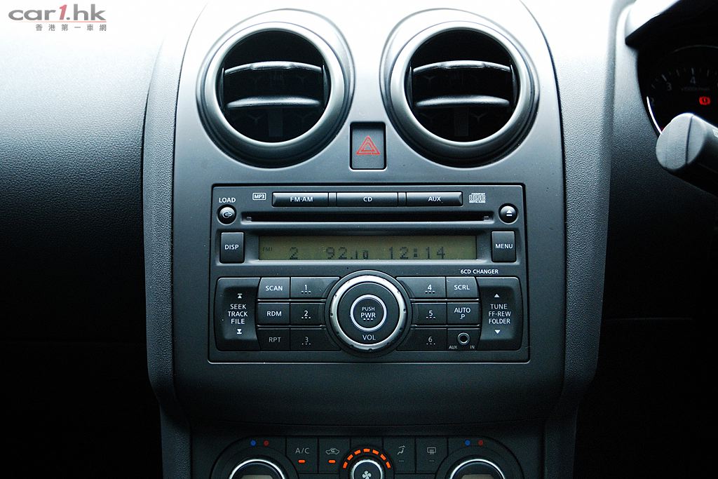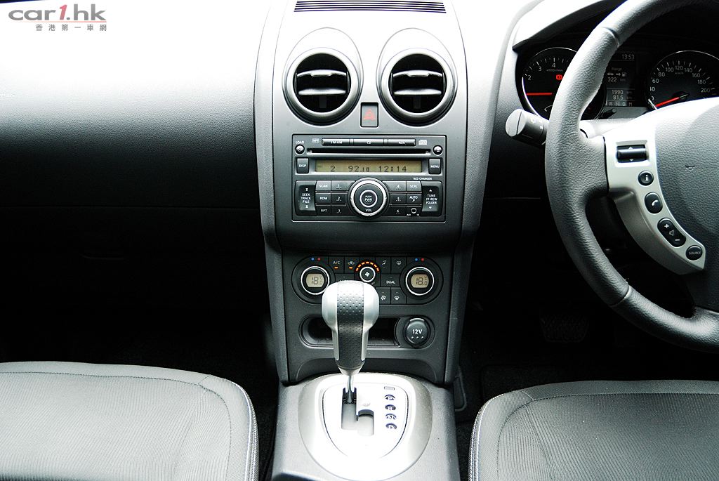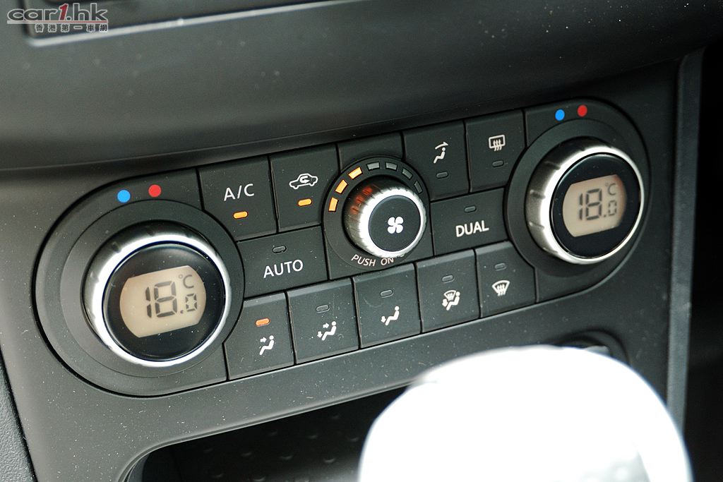 QASHQAI 五座版的設備較多電子部份,如冷氣系統操作以轉盤加按鍵操作,同時備有左右獨立恆溫冷氣調校。