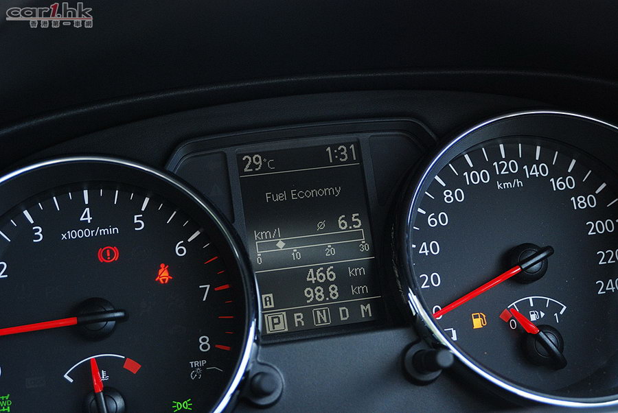 上到司機位準備著車時,看看錶板後,筆者以為自己上咗一架歐洲車,兩個銀圈轉數錶和里數錶中間,再夾著一個多功能行車電腦 Combimeter,由於這個 LCD 顯示屏的資訊很多,那份 High Tech 感覺即時湧現出來,而這份感覺與很多歐洲車款相近。軚盤上亦有功能鍵,如定速巡航、音響調校等都有齊。