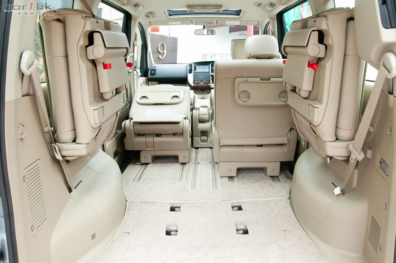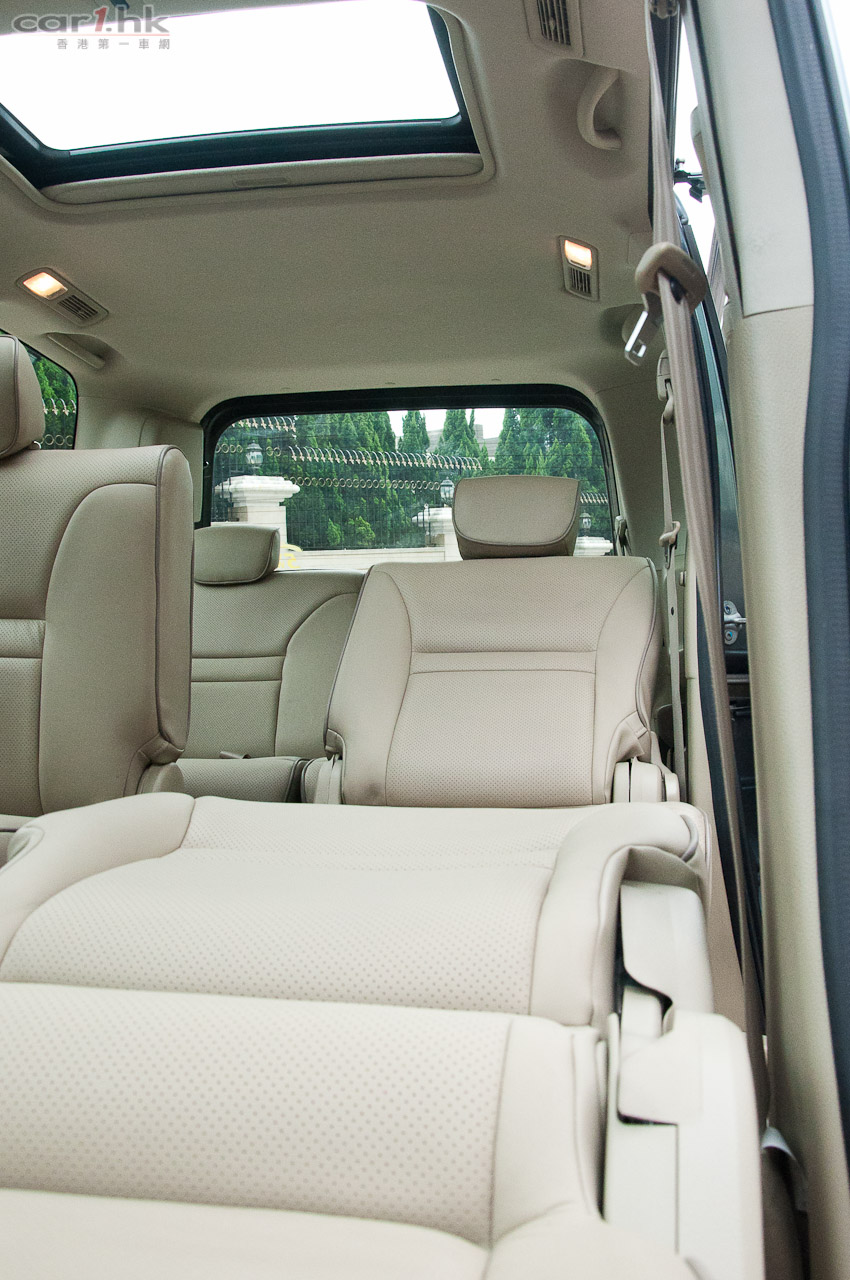 後排座椅可以向左右兩邊摺起,騰出寬闊的載物空間。中排座椅能夠拉前拉後,除了變出更大載物空間外,亦可把前中排的活動手枕拉後合併成沙發。而中排半卧式的皮椅可與中排合併成直列的大沙發,配合雙天窗,無論是與女朋友談情,或跟朋友吹水,都別具一番寫意,7 人車就算載不滿 7 人,都可以有好多用途。