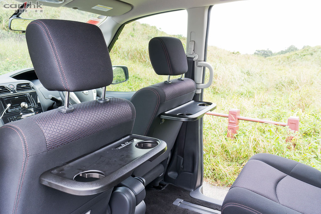 中排座椅備有小餐棹,放下小朋友的食物、飲品、玩具都無問題。