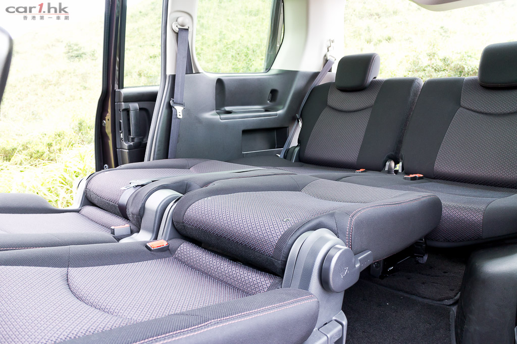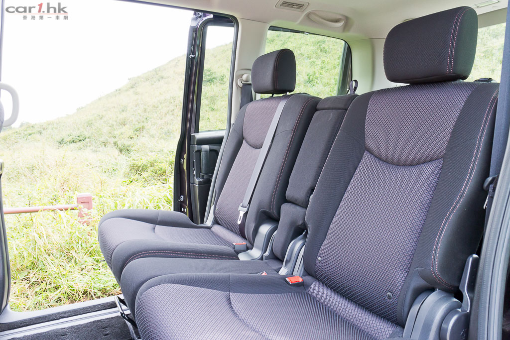 講了一大堆駕駛席的東西,是時候到這架 MPV 的主菜賣點,Serena 座椅佈局實在值得一讚,它們前中後三排都會互相連動,首先駕駛席的手枕,可以推到中排座椅中間,令到中排可以座 3 個乘客,成為 2+3+2 的佈局,即時成為一架七人車。以筆者來說,最喜歡的是將 Serena 的 6 個座位模式,是最寬敞舒服的設定,在 2+2+2 的佈局下每個乘客都有最多的活動空間。不過,在七座模式時中排的舒適性一樣不錯,只是筆者家中沒有七名乘客而已。加上在 6 座模式時,中排座位中央可成為上落通道,對於不太熟練坐位變換的人來說,這個設定在中排和後排的上落車是最方便的。車身長度達 4,685mm 的 Serena,第三排的座椅其實不遜於中排座椅,腳部和頭頂空間依然充裕,成年男仕乘座一樣沒有問題。如果需要放置大型行李,亦可將尾排的坐椅翻起,可因應情況需要翻起一張或者兩張都翻起,大大提升變換性,非常靈活。要變身 4 座、5 座、6 座加大型尾箱佈局一樣可以。